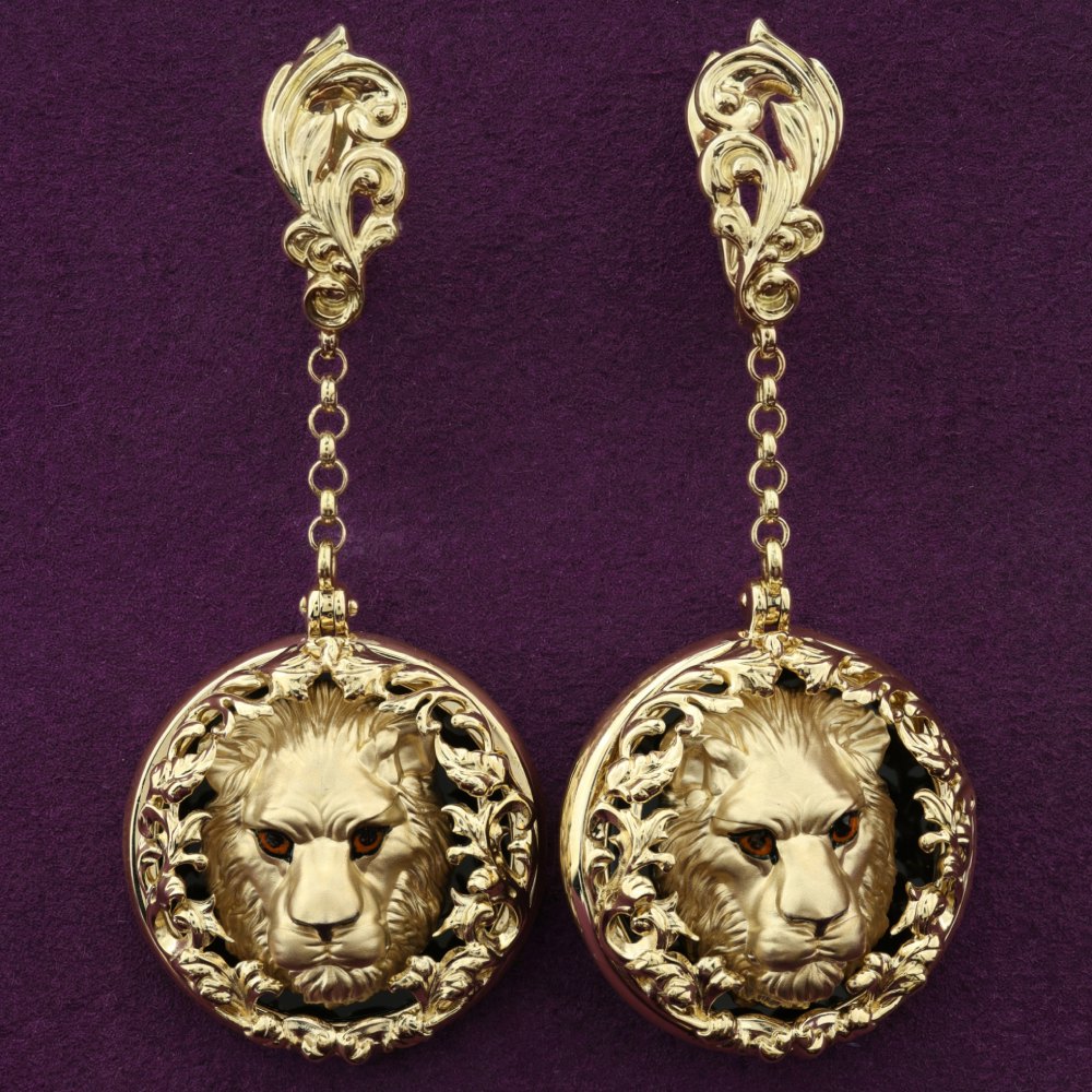 Серьги из лимонного золота c эмаль и ониксом