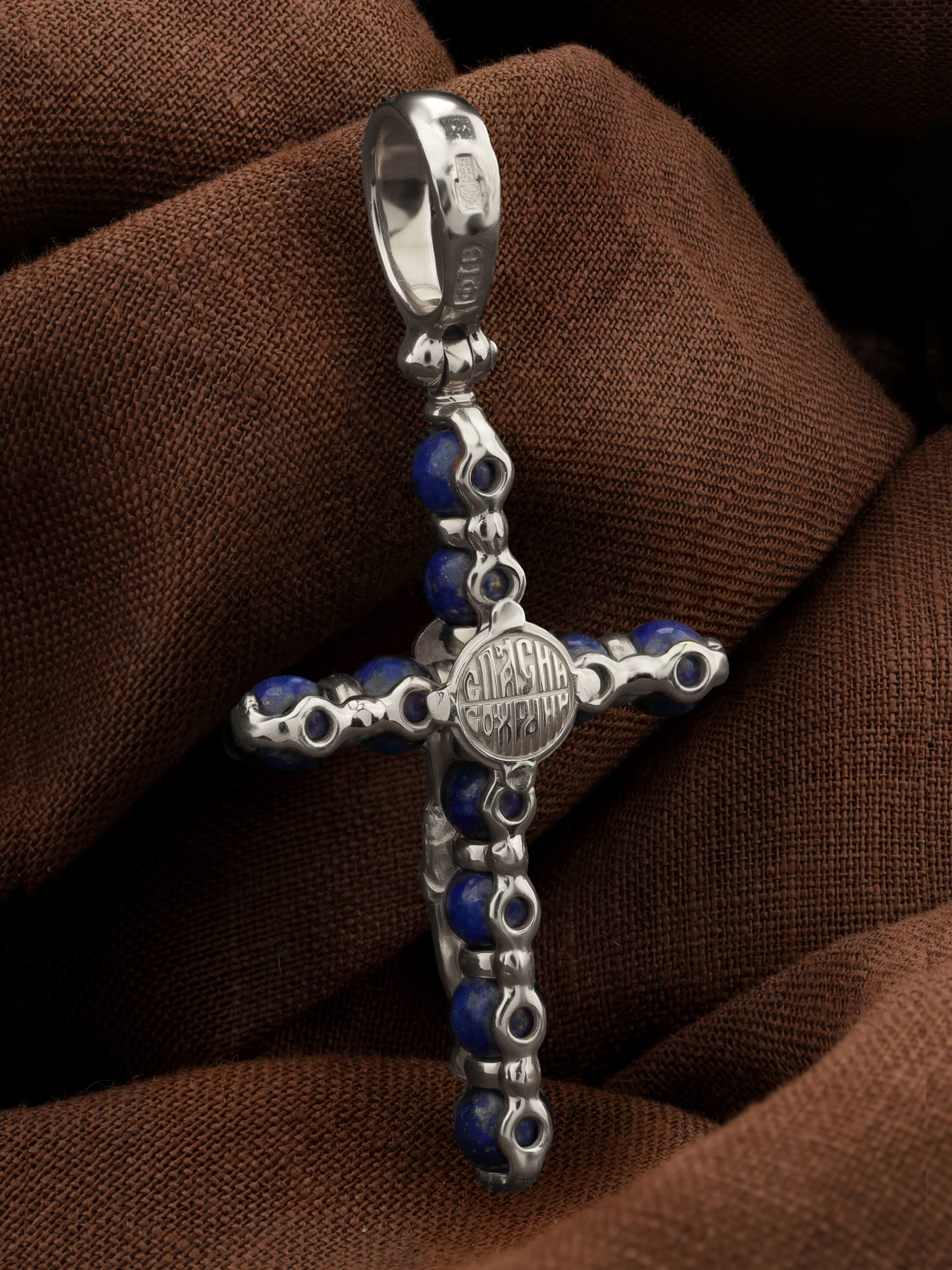Крест из белого золота c лазуритом