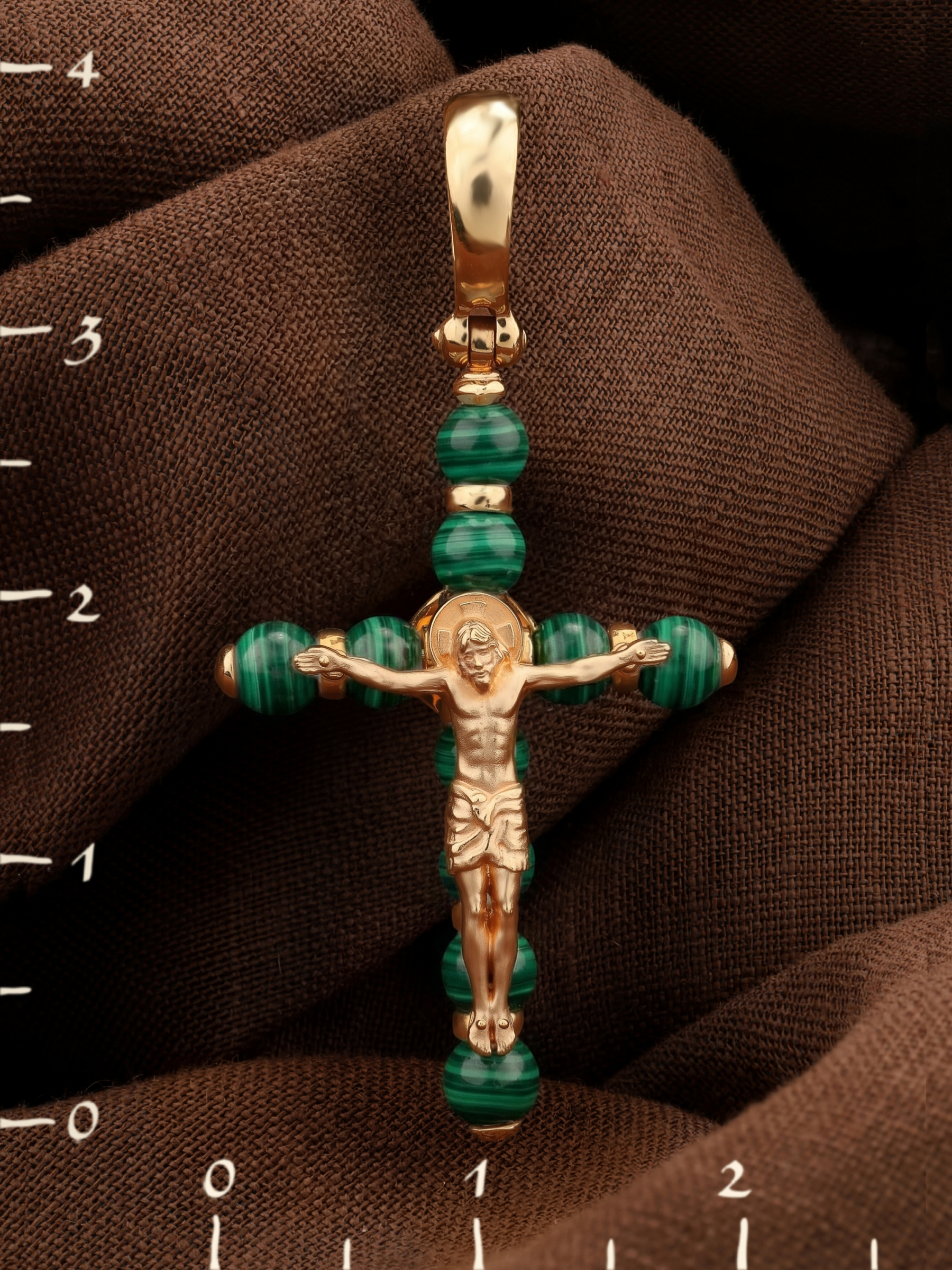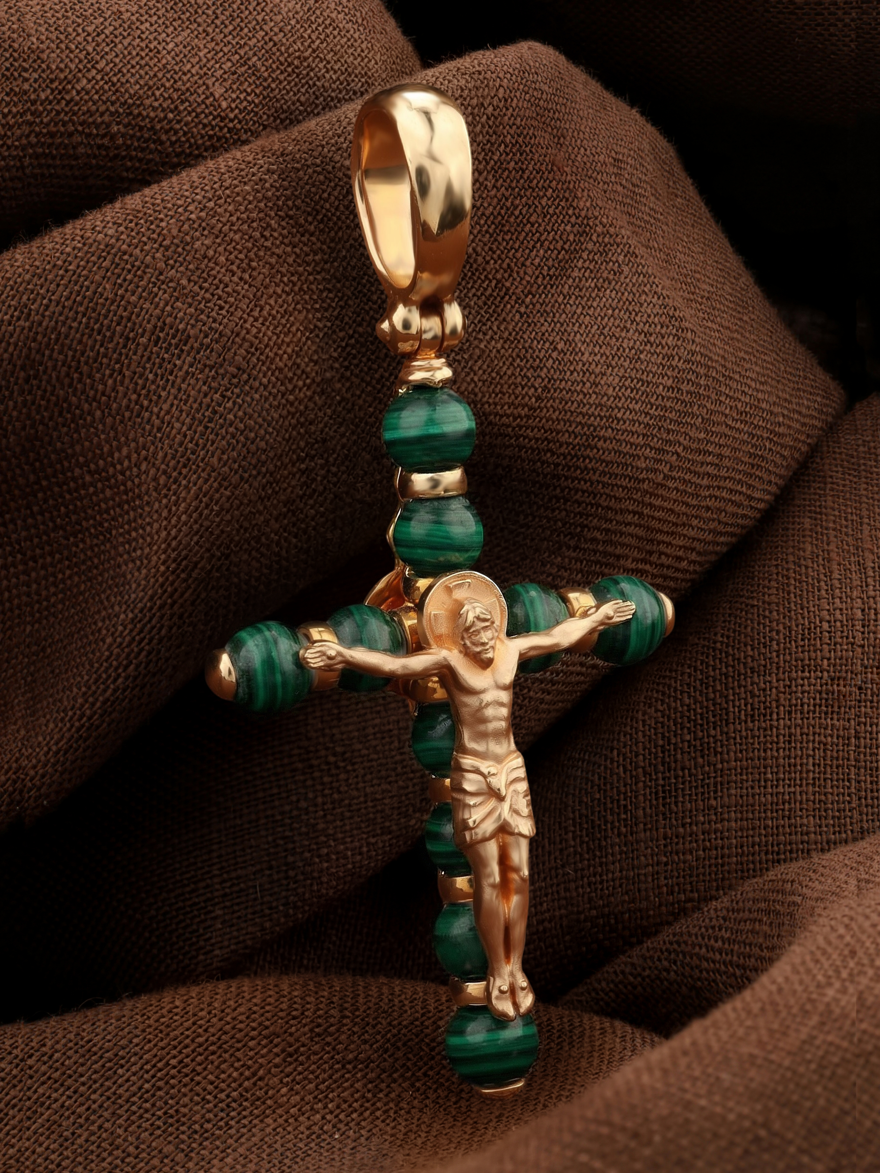 Крест из золота c малахитом