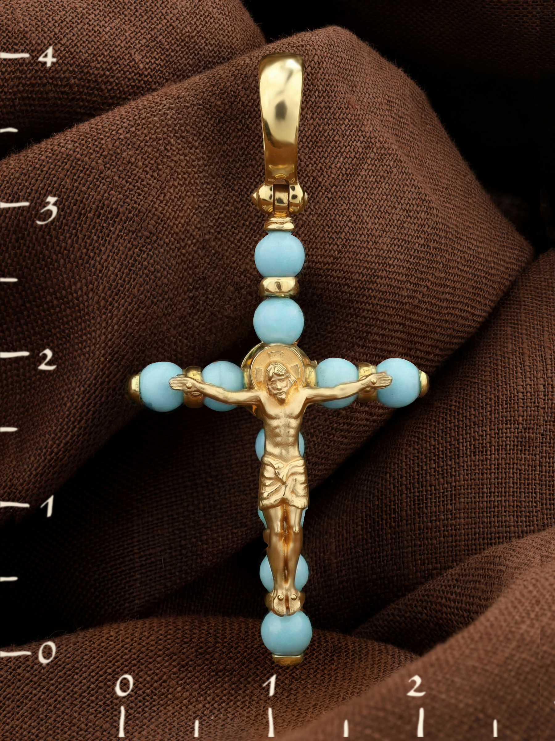 На лицевой стороне креста изображено Распятие Господа и Спасителя нашего Иисуса Христа. Своими крестными страданиями Господь смыл наши грехи, покрыл наш долг перед Богом или, на языке Писания, нас «искупил». В Голгофе сокрыта непостижимая тайна бесконечной правды и любви Бога. Крест стал символом победы добра над злом, жизни над смертью, напоминанием бесконечной Божьей любви, предметом радости. Воплотившийся Сын Божий Своею кровью освятил крест и сделал его проводником Своей благодати, источником освящения верующих.