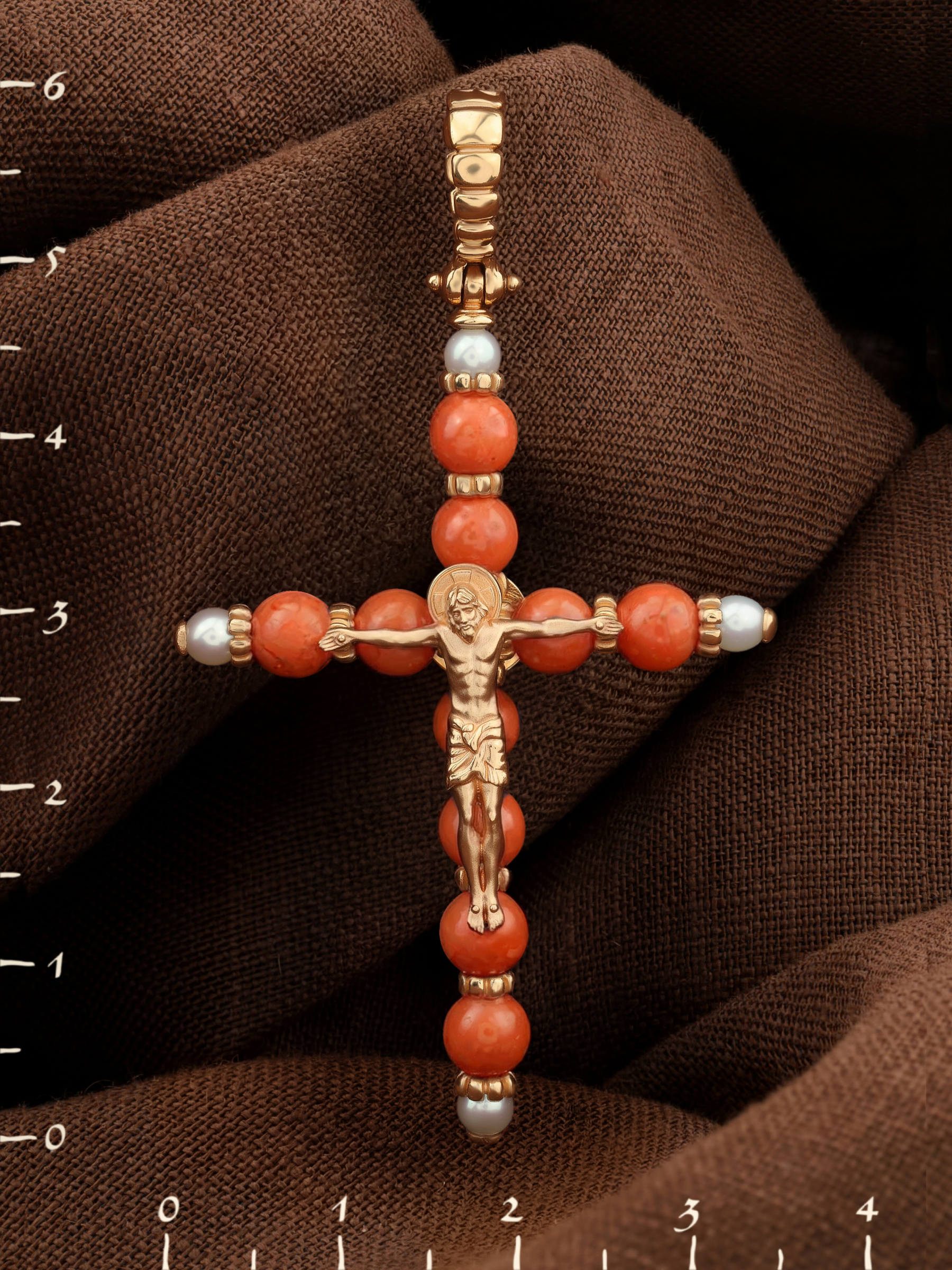 Крест из золота c жемчугом и кораллом