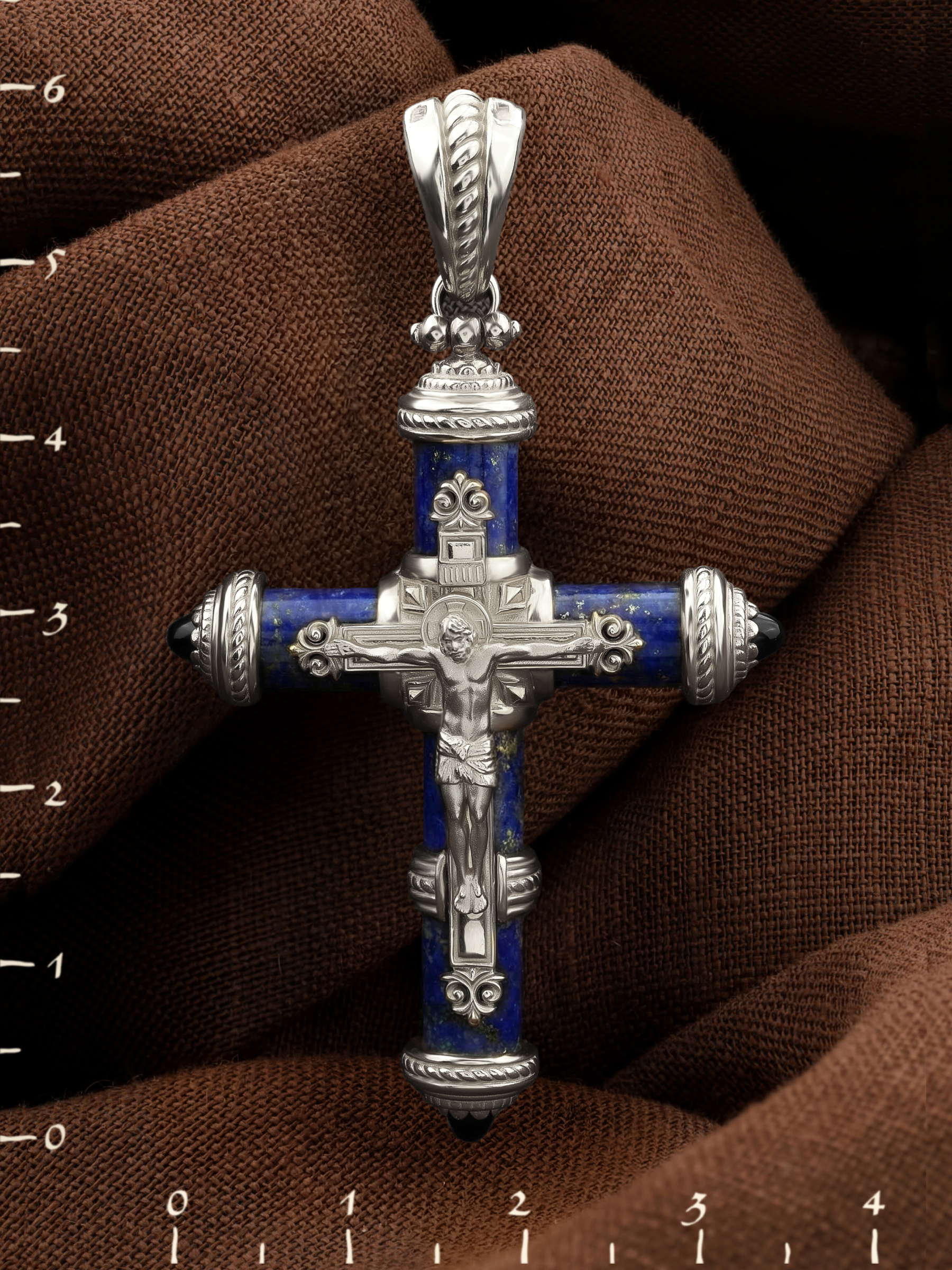 Крест из белого золота c ониксом и лазуритом