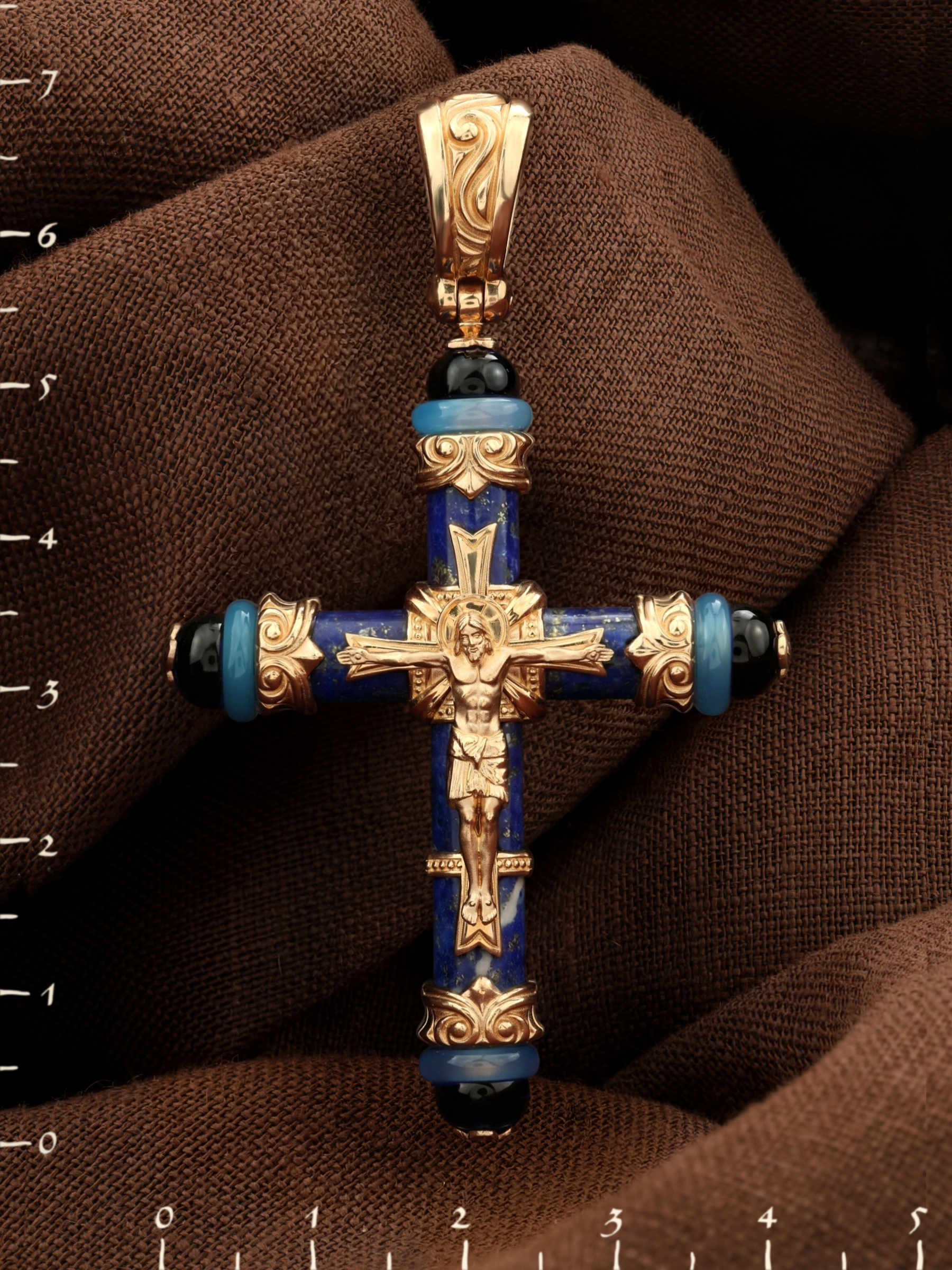 Крест из золота c ониксом, агатом и лазуритом