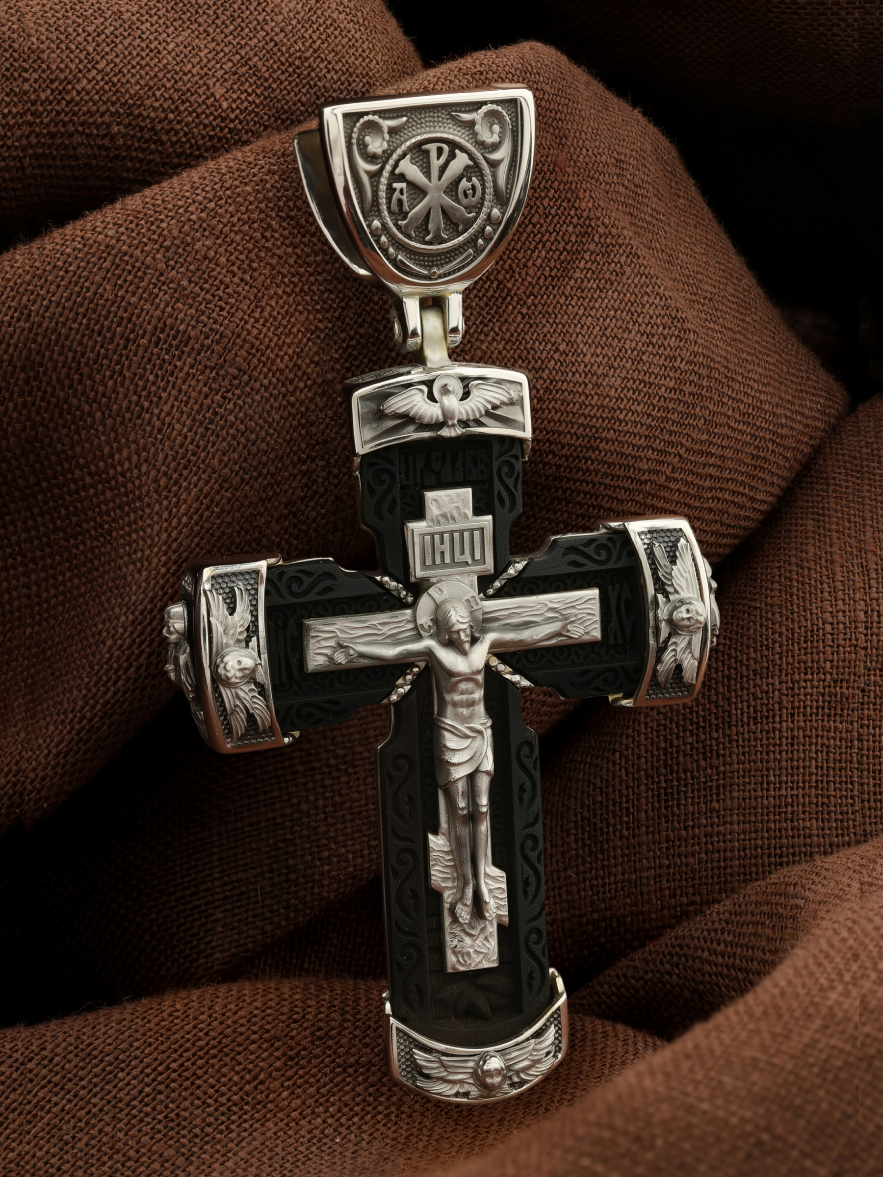 Крест из белого золота c эбеновым деревом