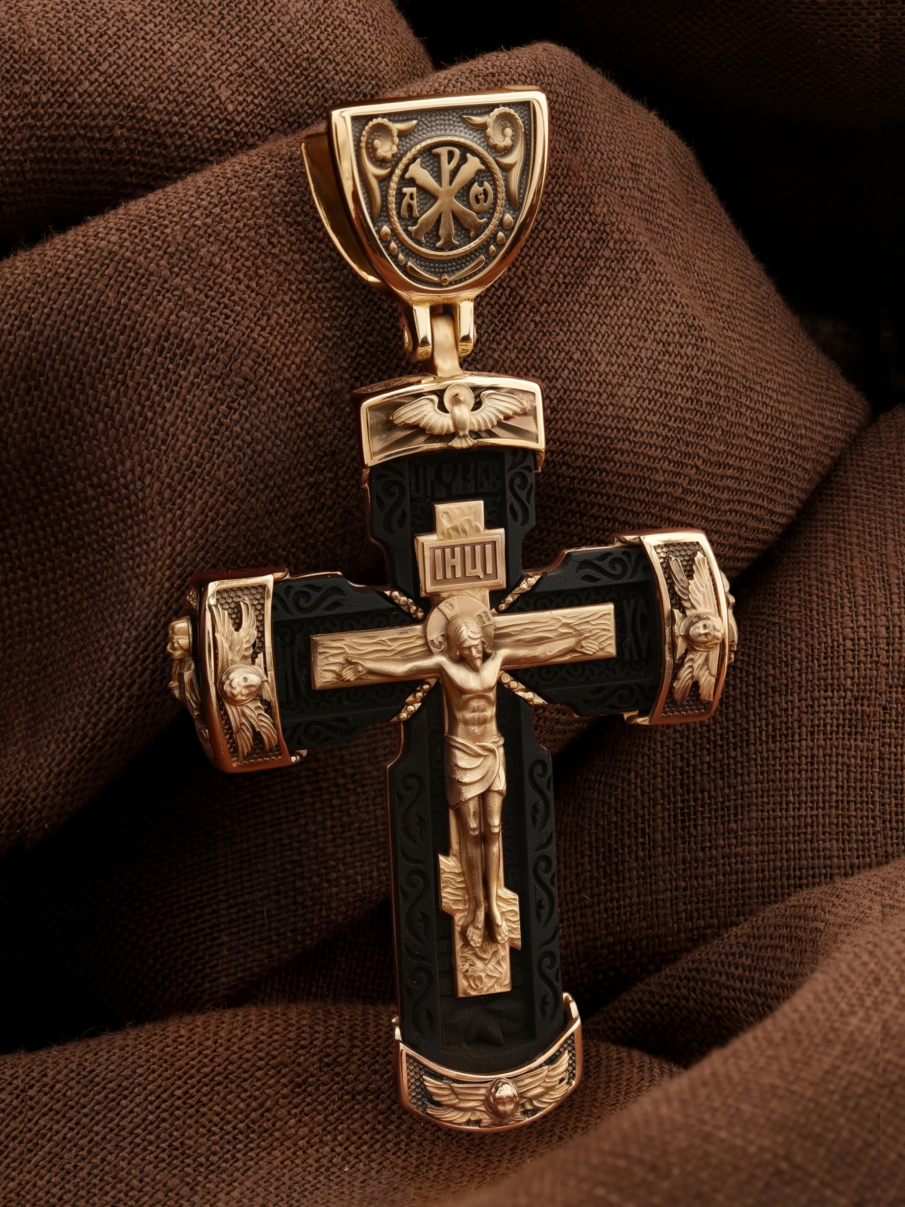 Крест из золота c эбеновым деревом