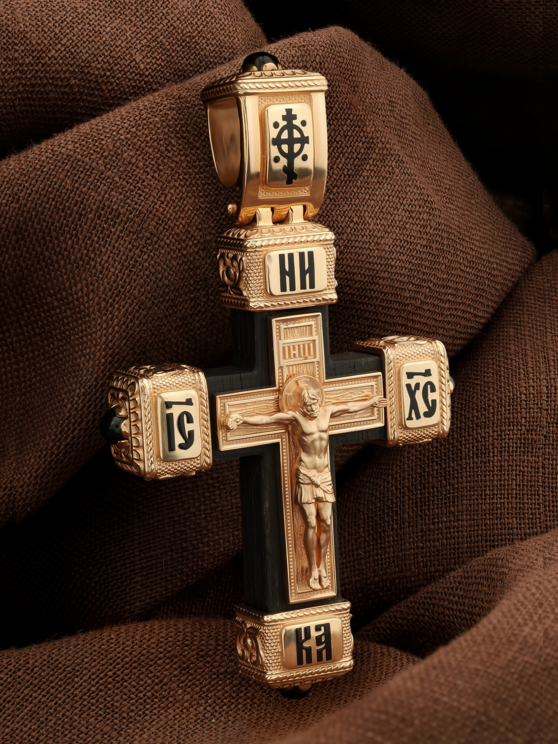 Крест из золота c эмаль, ониксом и эбеновым деревом