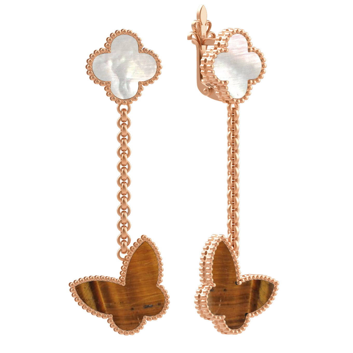 Серьги из золота c тигровым глазом и перламутром