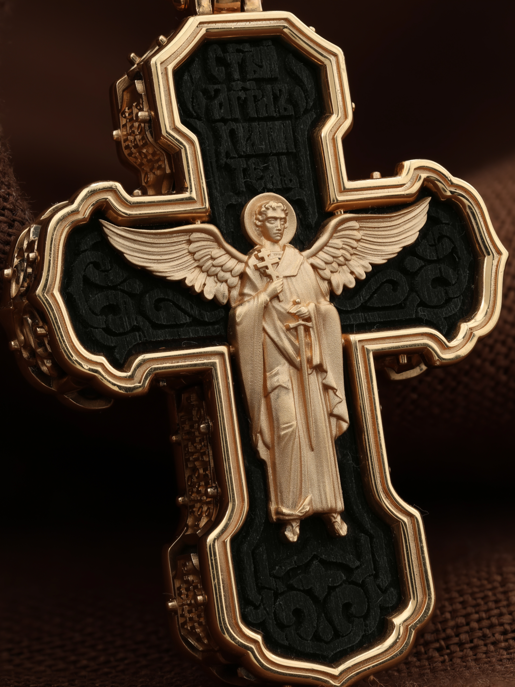Крест из золота c эбеновым деревом