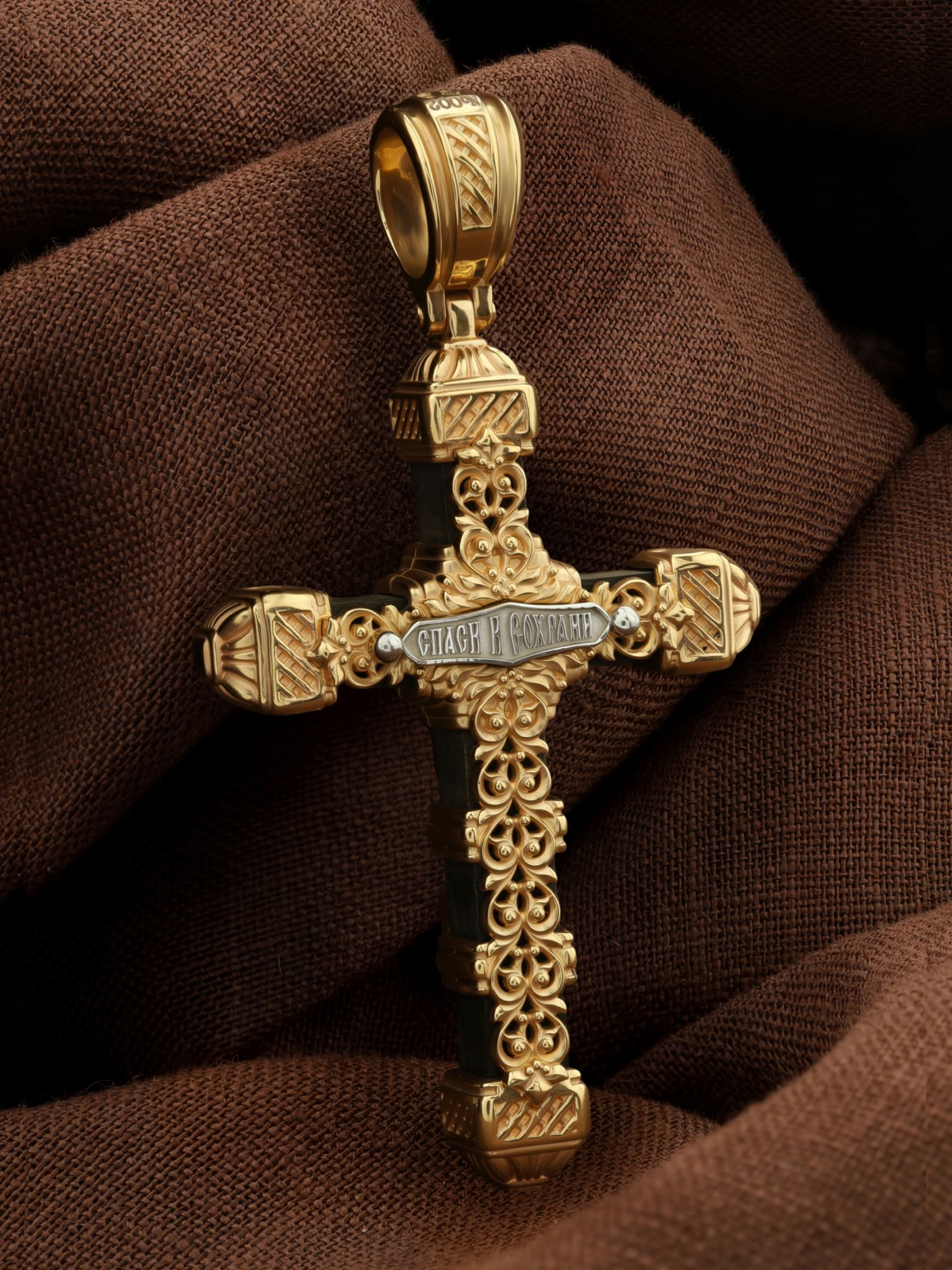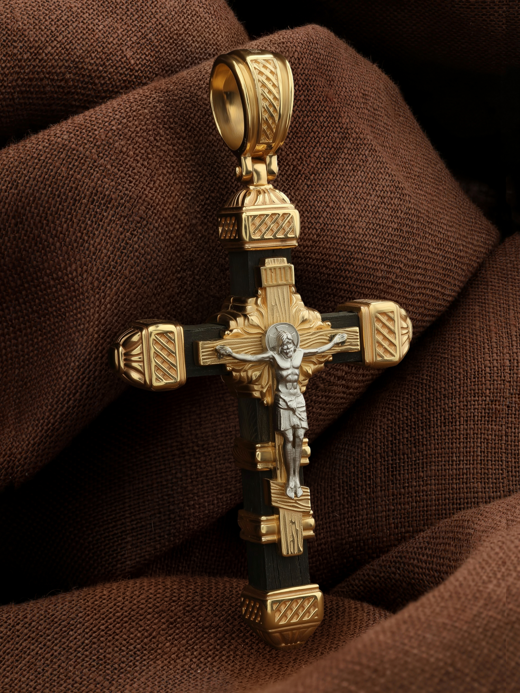 Крест из лимонного золота c эбеновым деревом