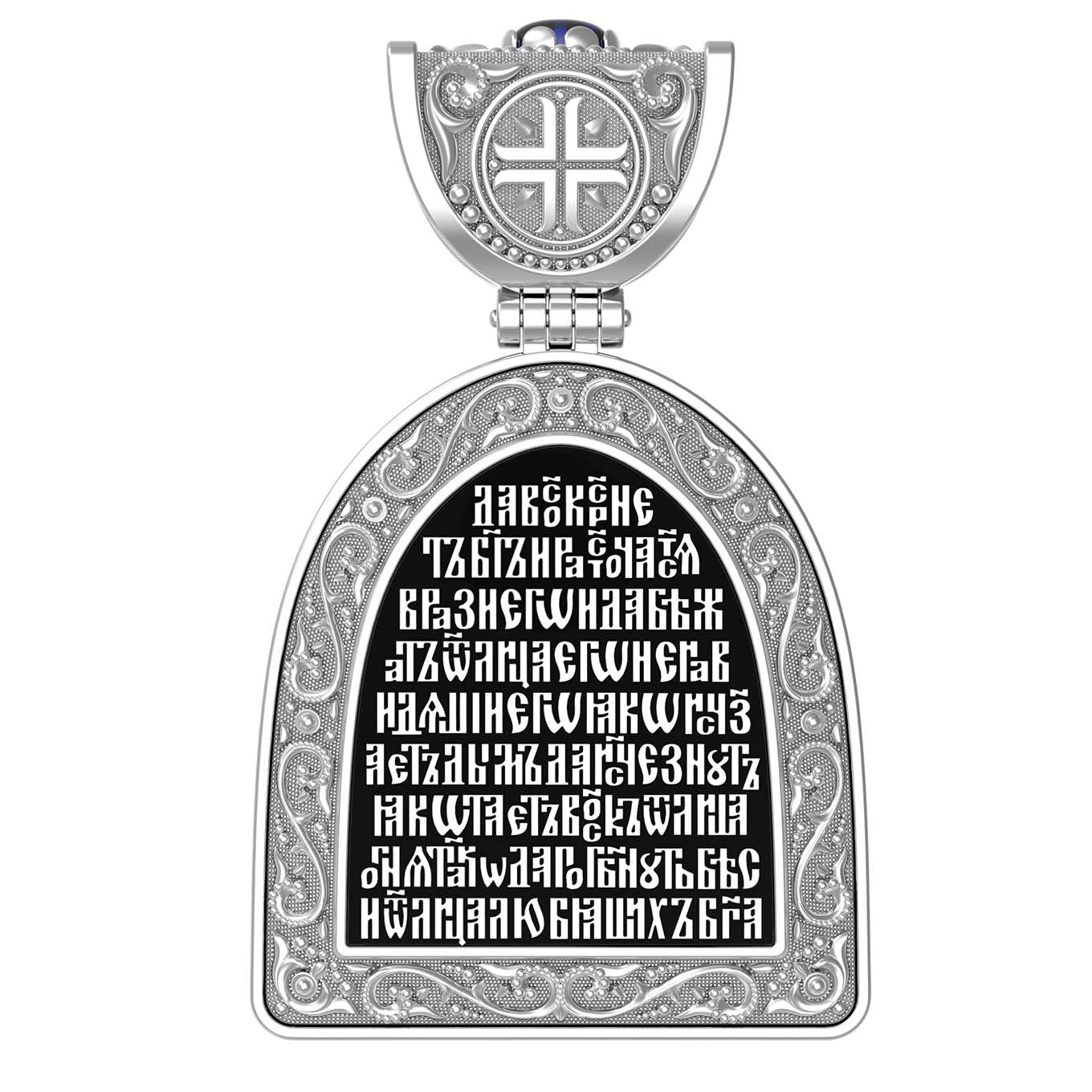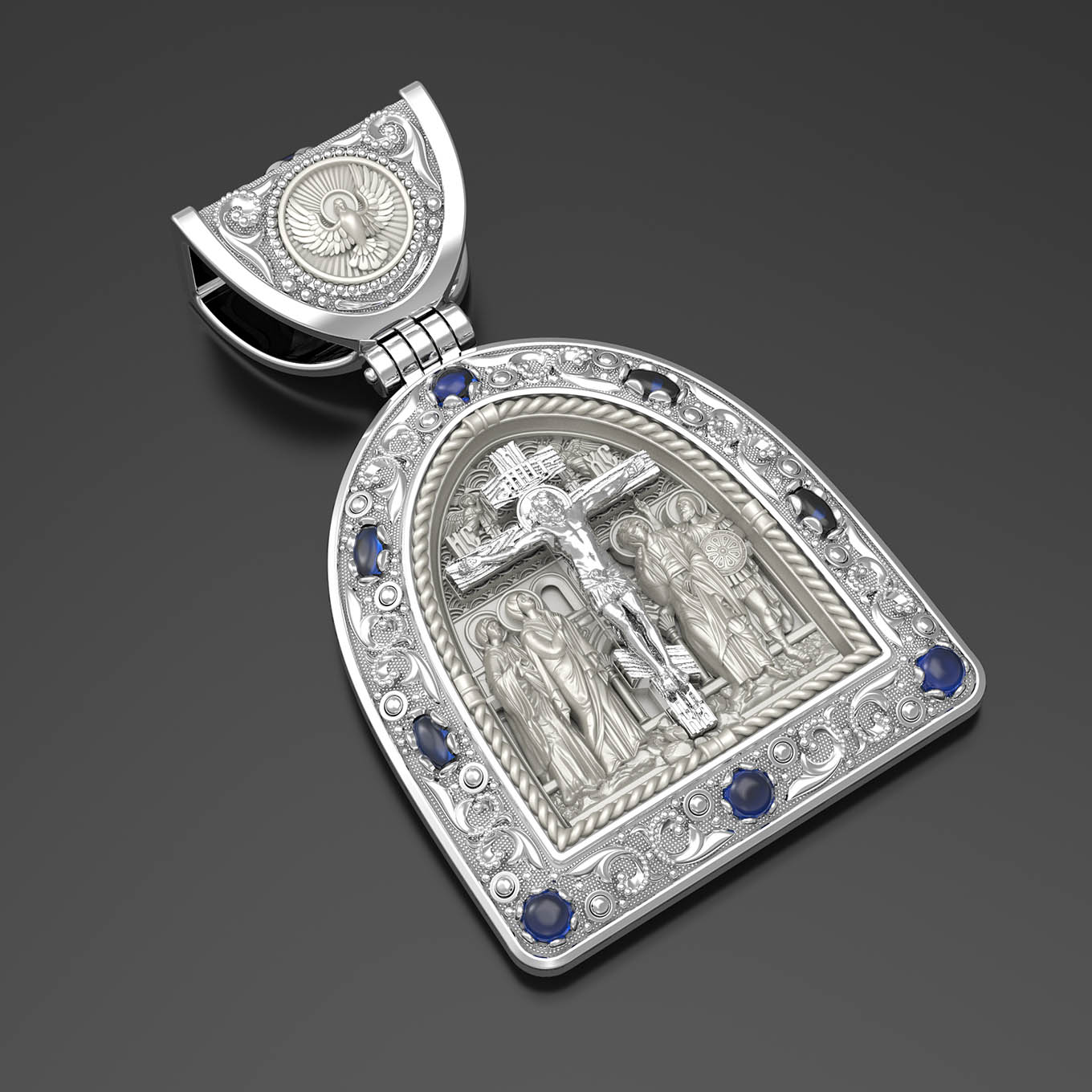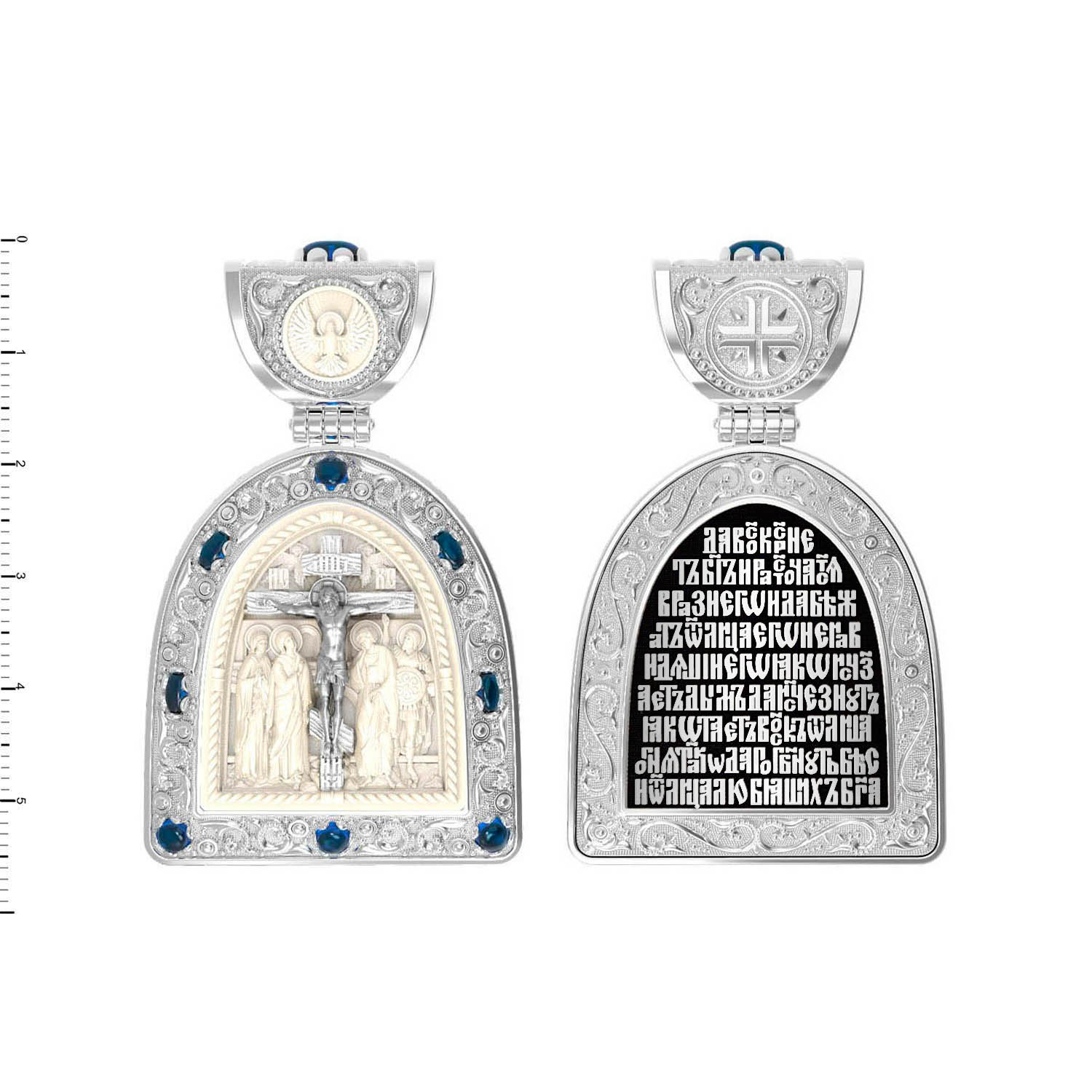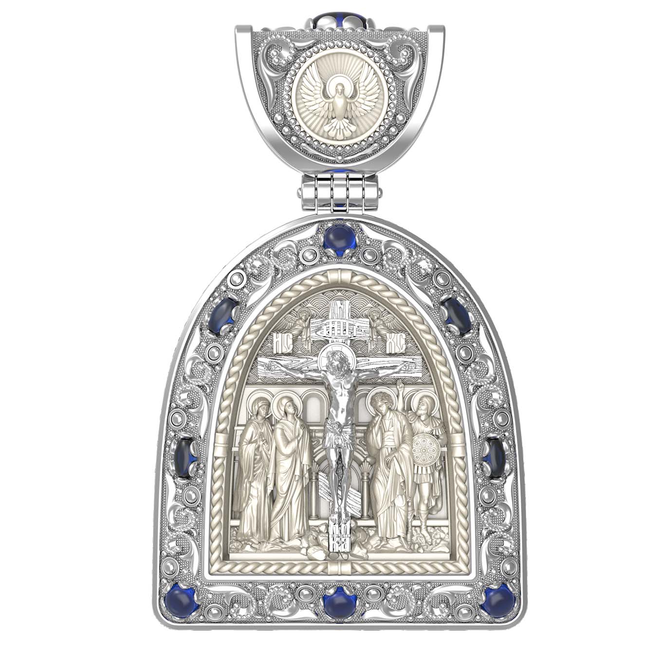 Образок из белого золота c эмаль, сапфиром и бивнем мамонта