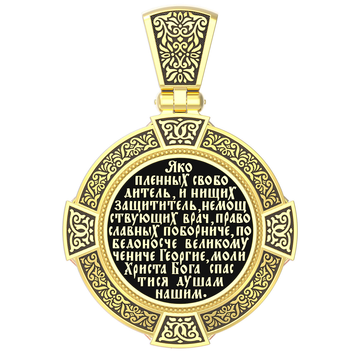 На обороте написана молитва"Яко пленных свободитель, и нищих защититель, немощствующих врач, православных поборниче, победоносче великому чениче Георгие, моли Христа Бога спастися душам нашим.»