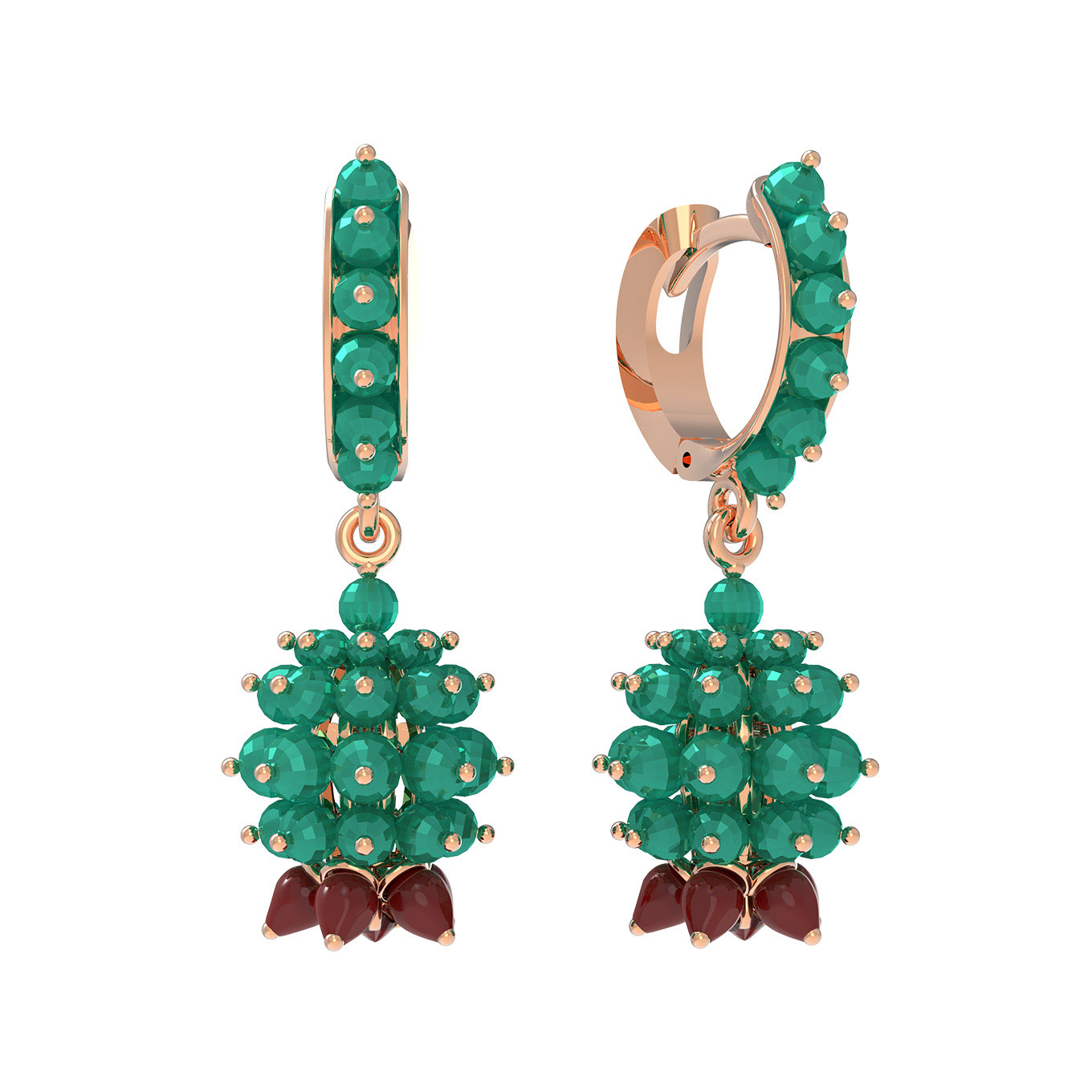 Серьги из золота c гранатом, хризопразом и кораллом