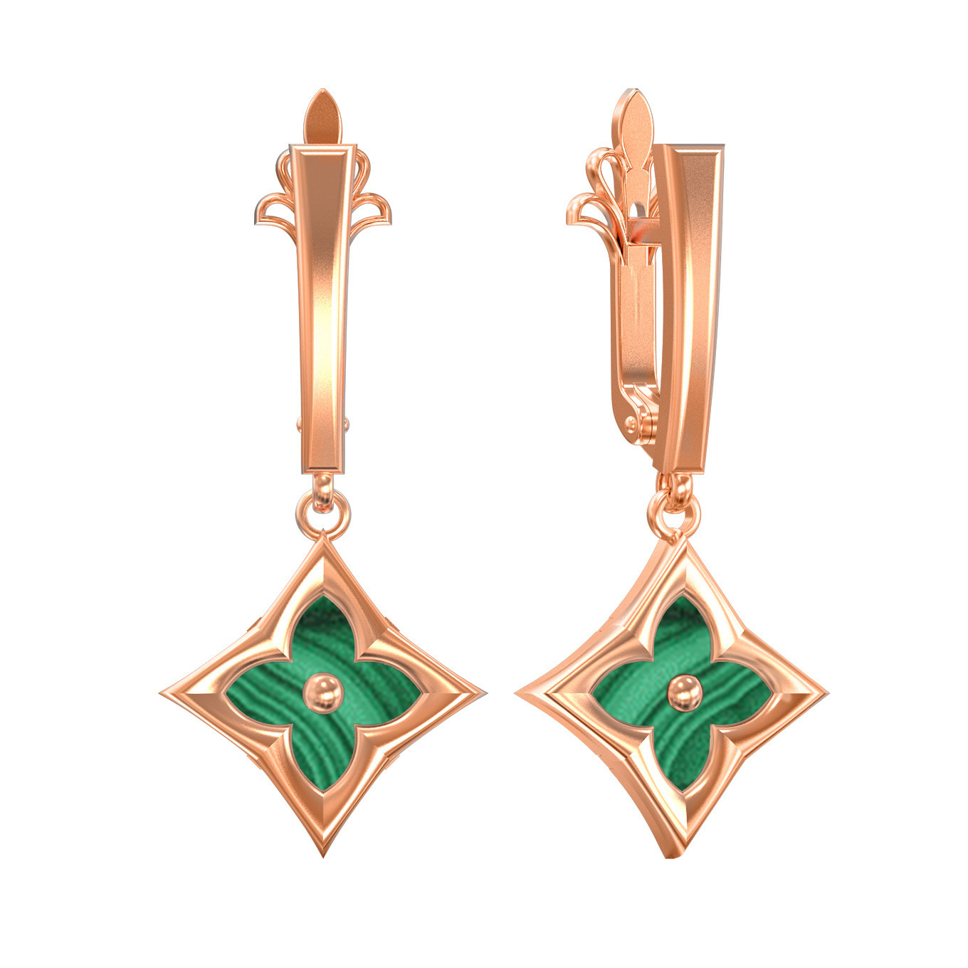 Серьги из золота c малахитом