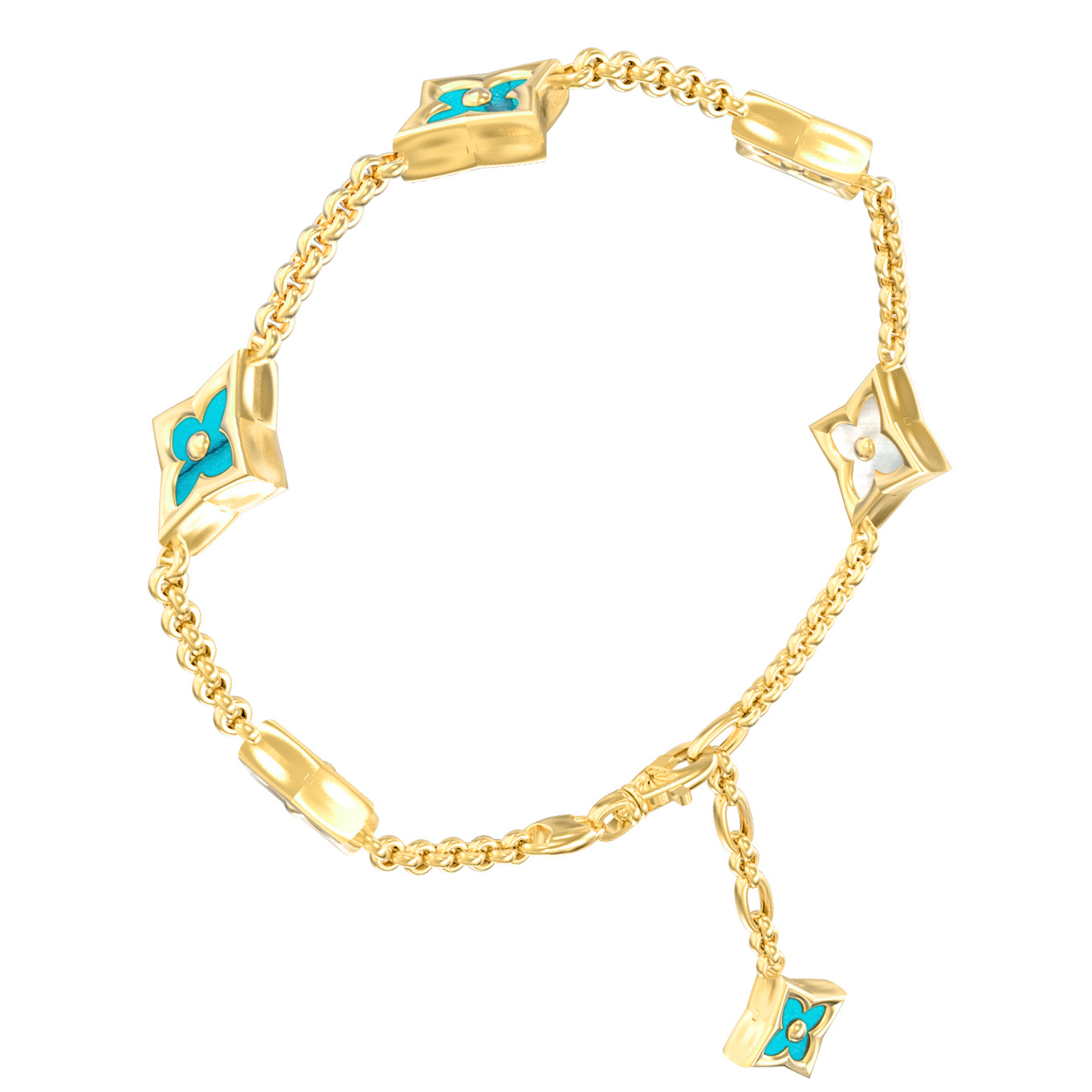 Браслет из лимонного золота c бирюзой и перламутром