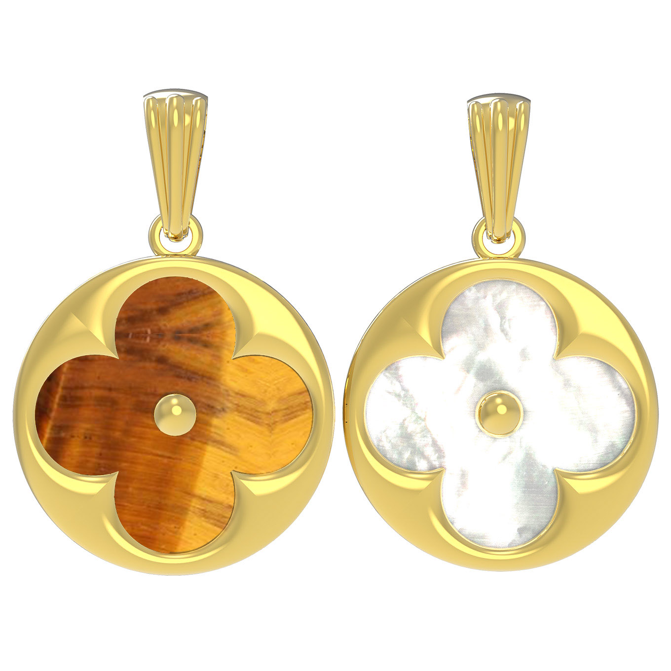 Подвеска из лимонного золота c тигровым глазом и перламутром