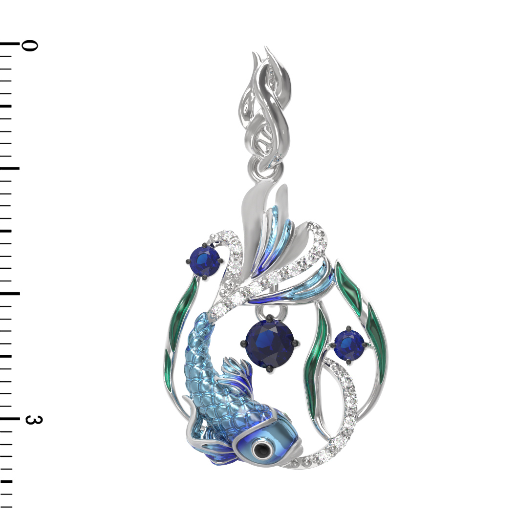 Подвеска из белого золота c эмаль, фианитом и сапфиром