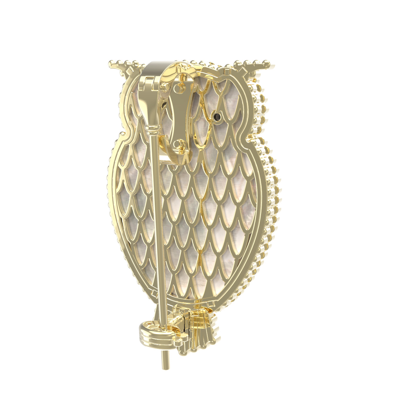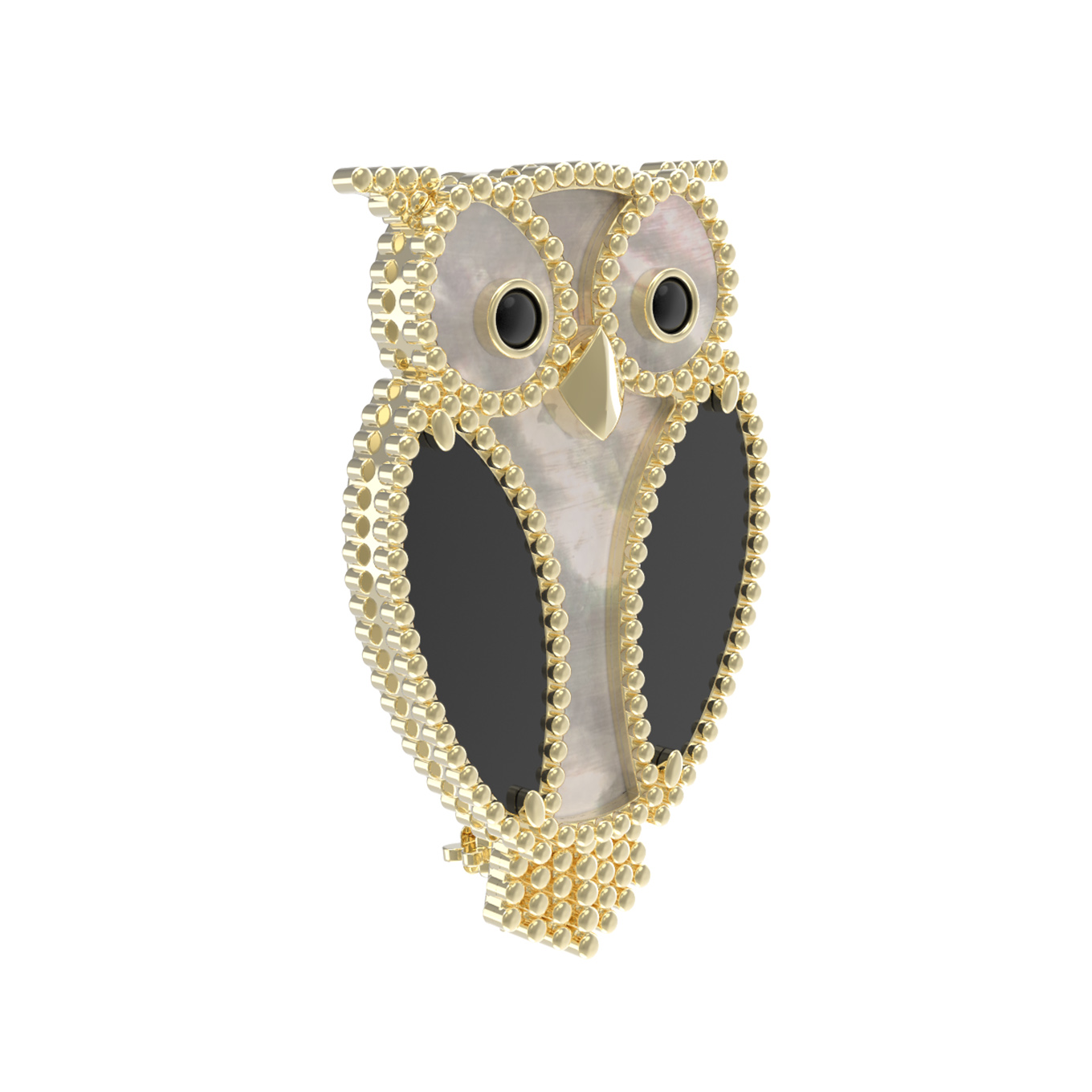 Брошь из лимонного золота c эмаль, ониксом и перламутром