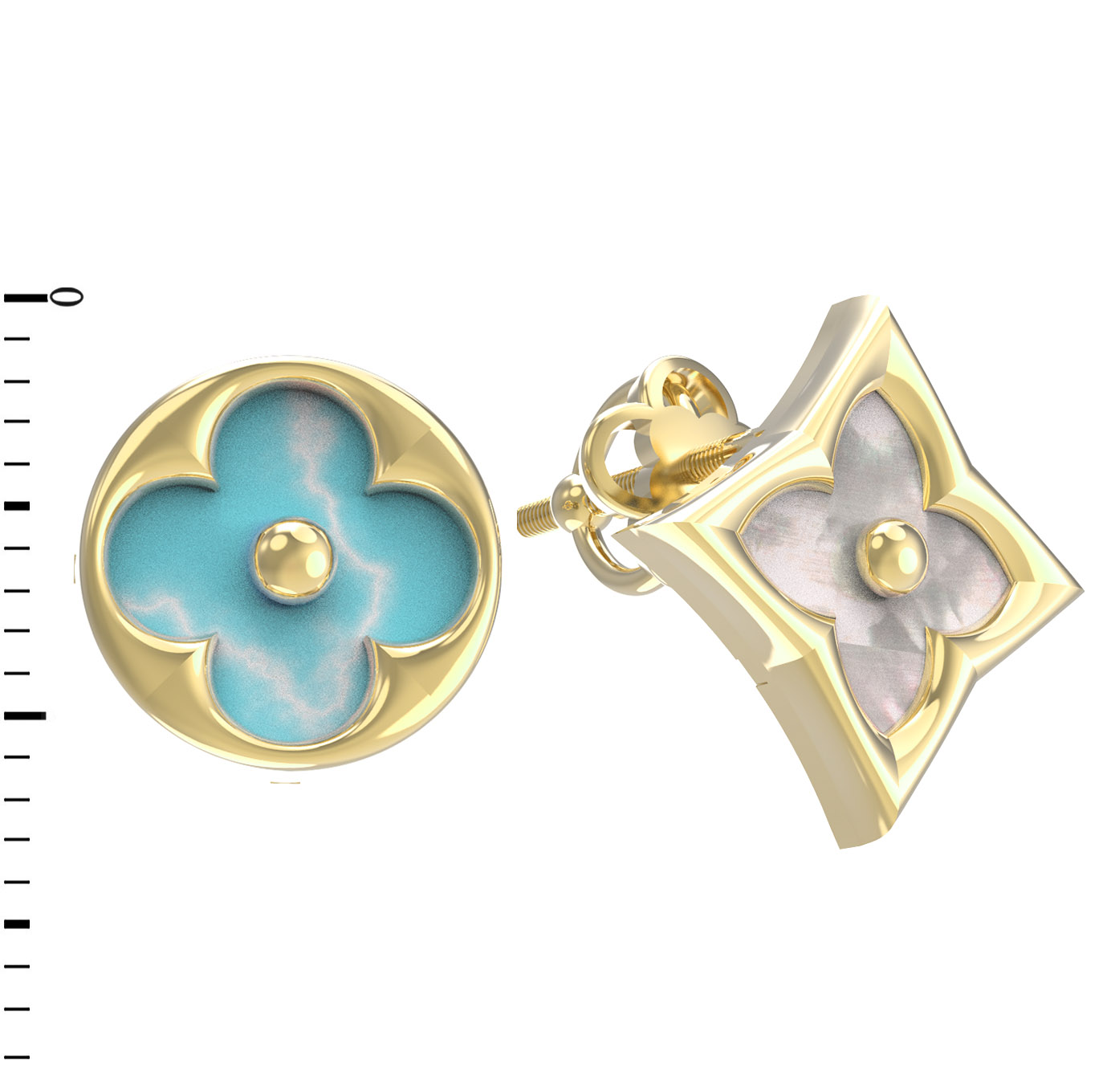 Серьги из лимонного золота c бирюзой и перламутром