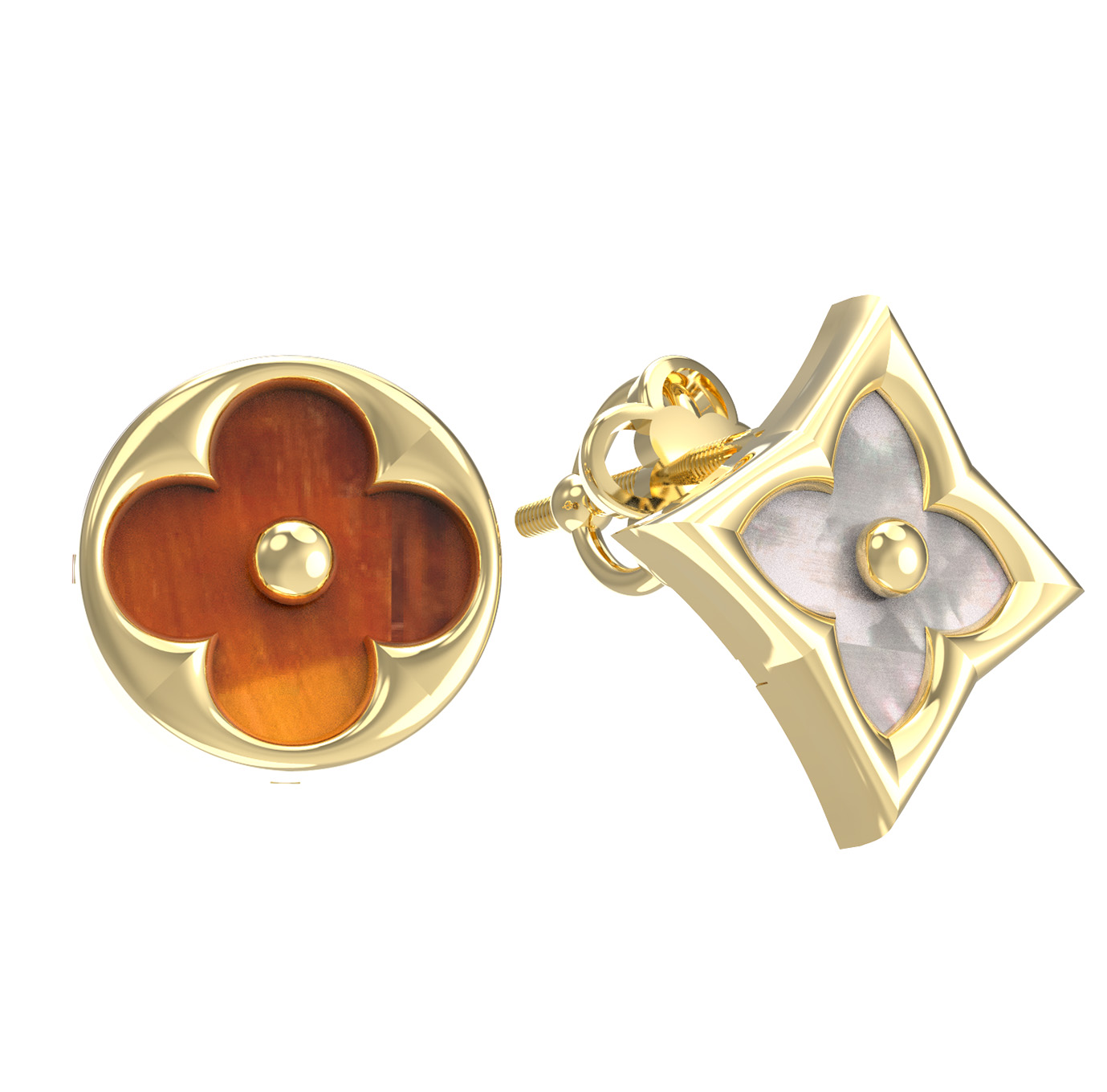 Серьги из лимонного золота c тигровым глазом и перламутром