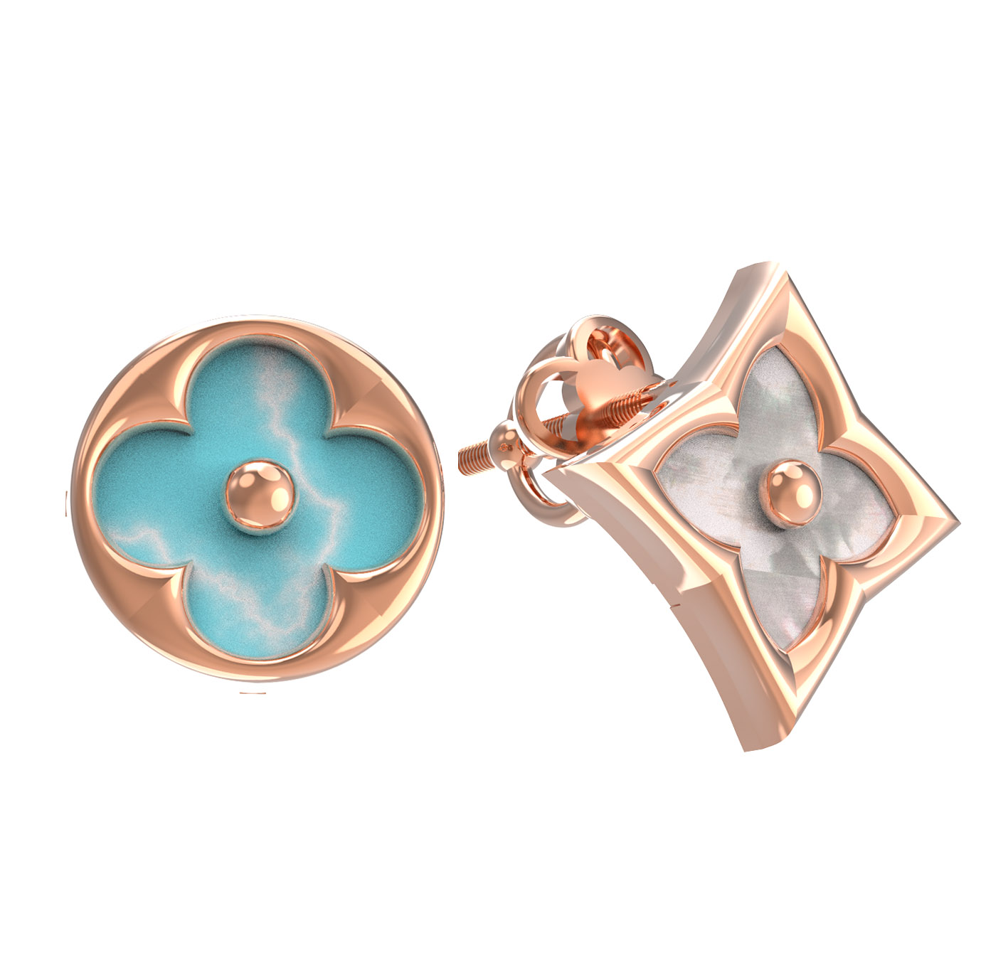 Серьги из золота c бирюзой и перламутром
