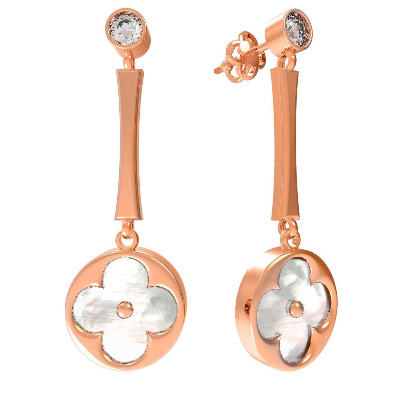 Серьги из золота c фианитом и перламутром