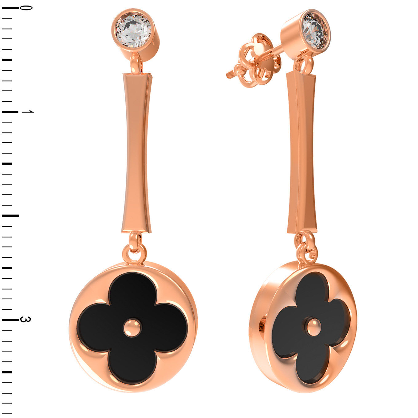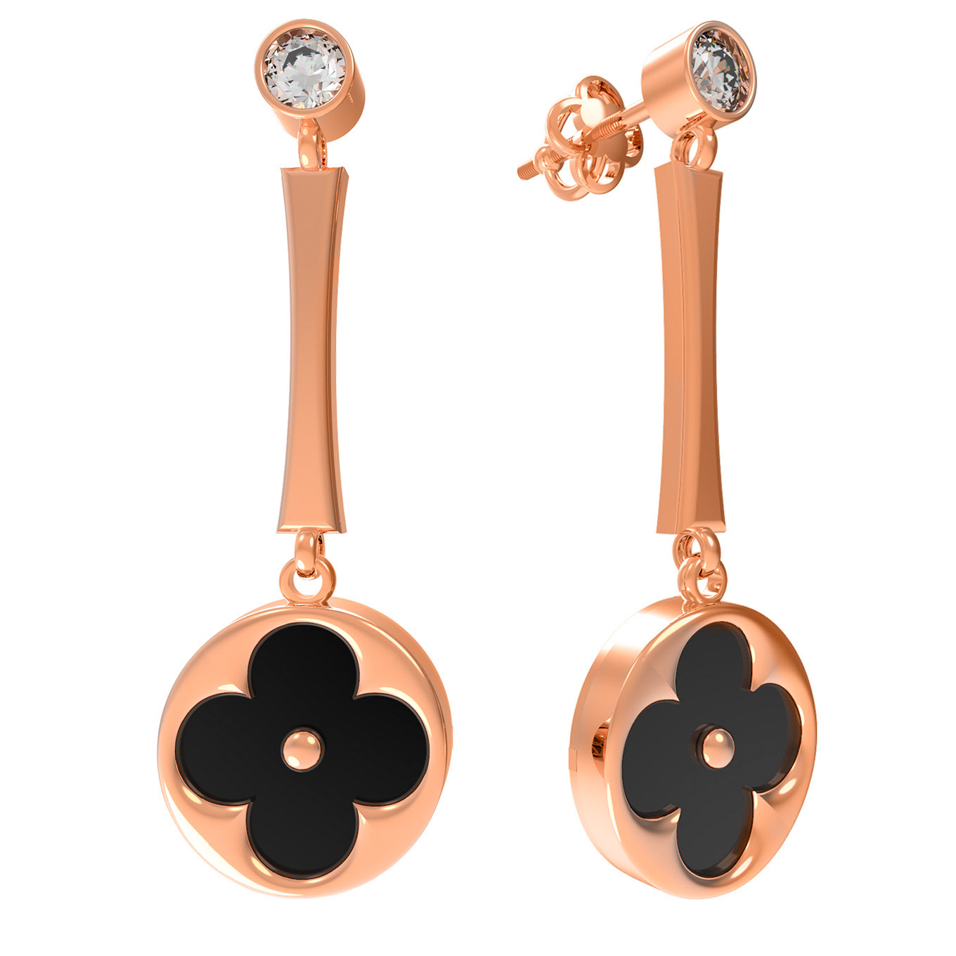 Серьги из золота c фианитом и ониксом