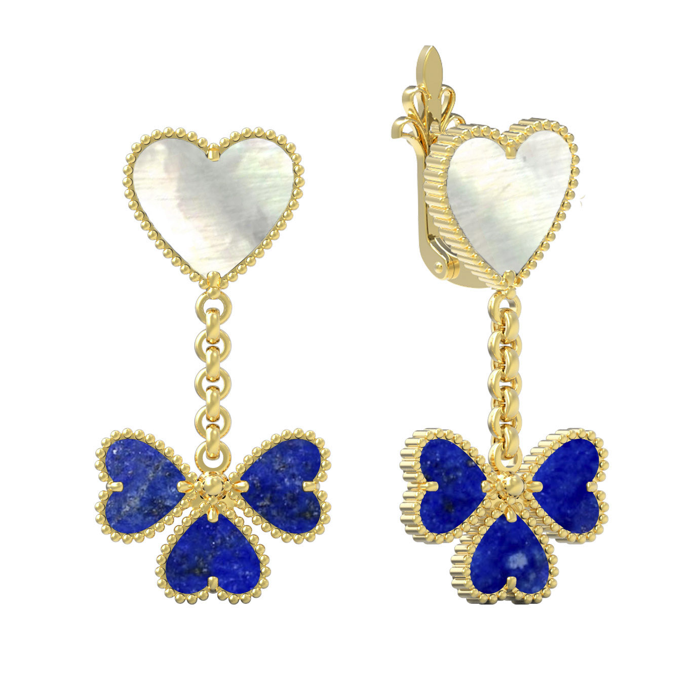 • Серьги из лимонного золота c тигровым глазом и перламутром