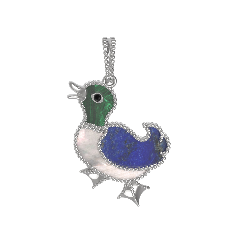 Подвеска из белого золота c эмаль, лазуритом, малахитом и перламутром