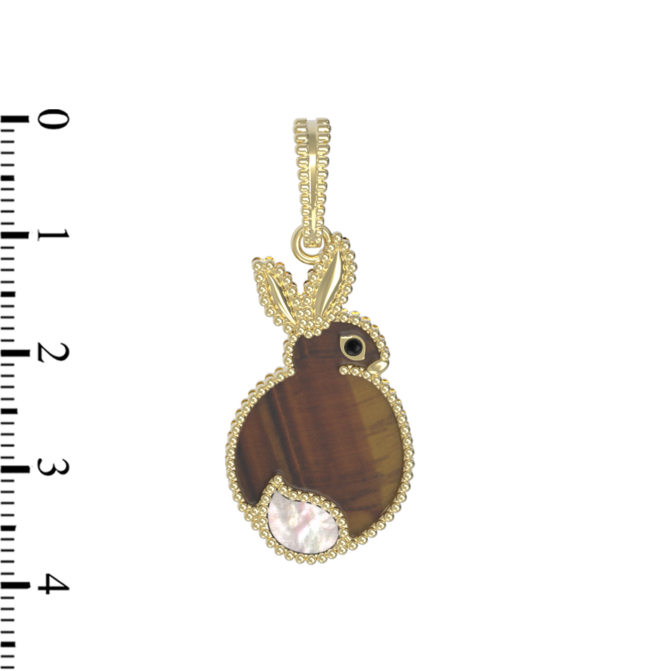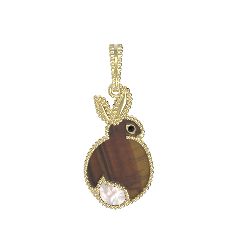 Подвеска из лимонного золота c эмаль, тигровым глазом и перламутром