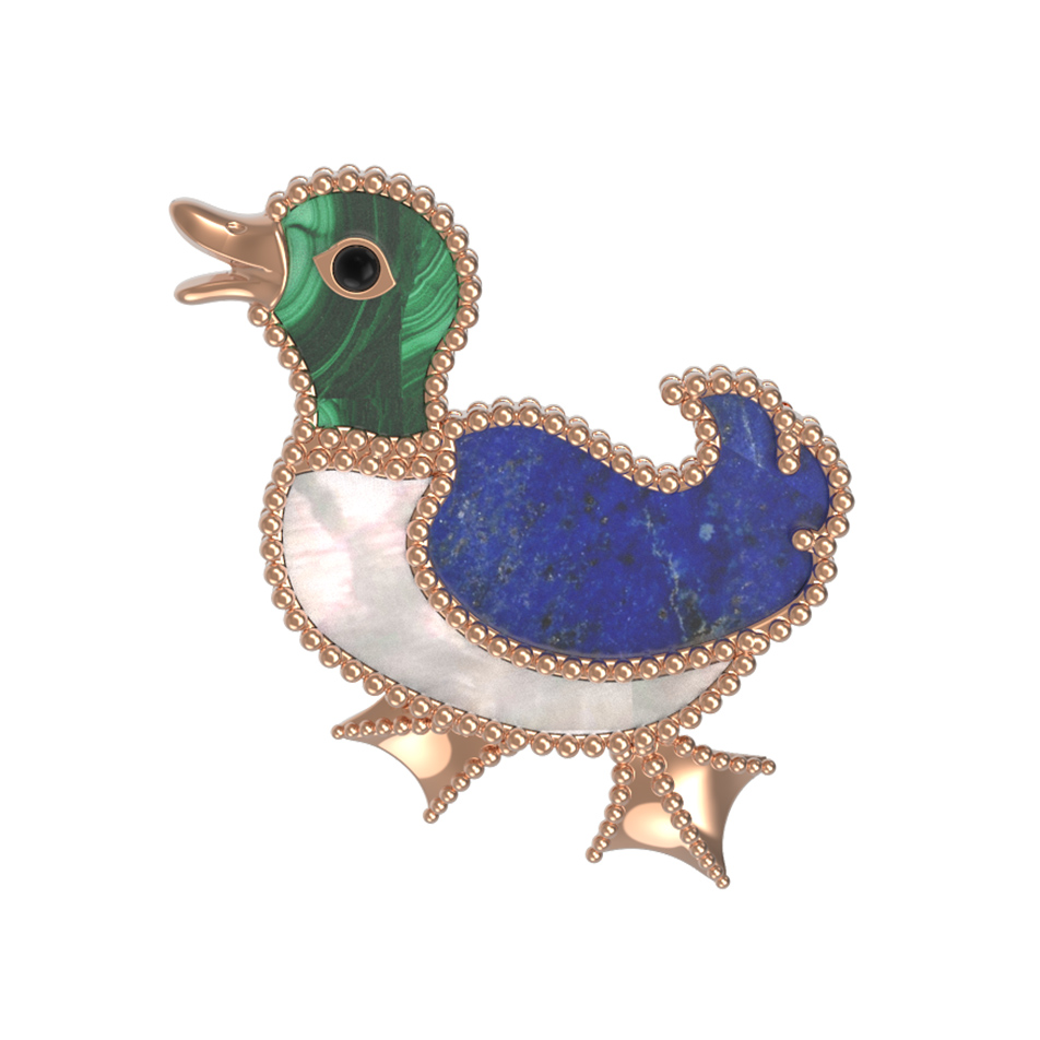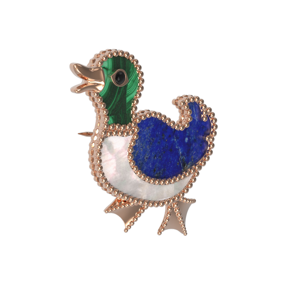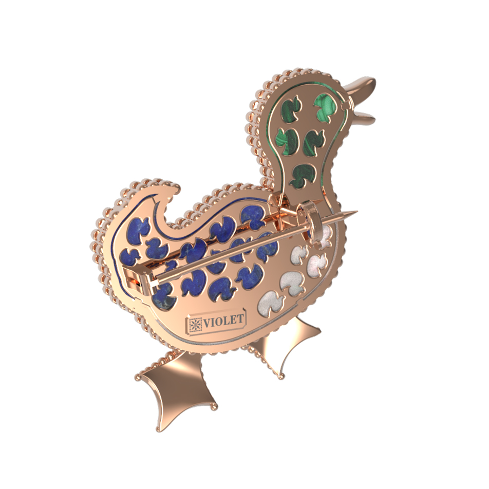 Брошь из золота c эмаль, лазуритом, малахитом и перламутром