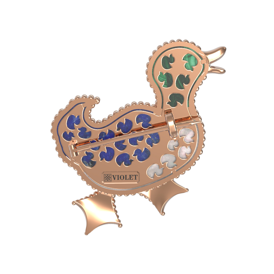Брошь из золота c эмаль , лазуритом, малахитом и перламутром