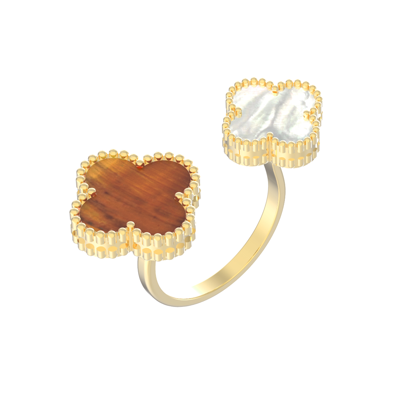 Кольцо из лимонного золота c тигровым глазом и перламутром