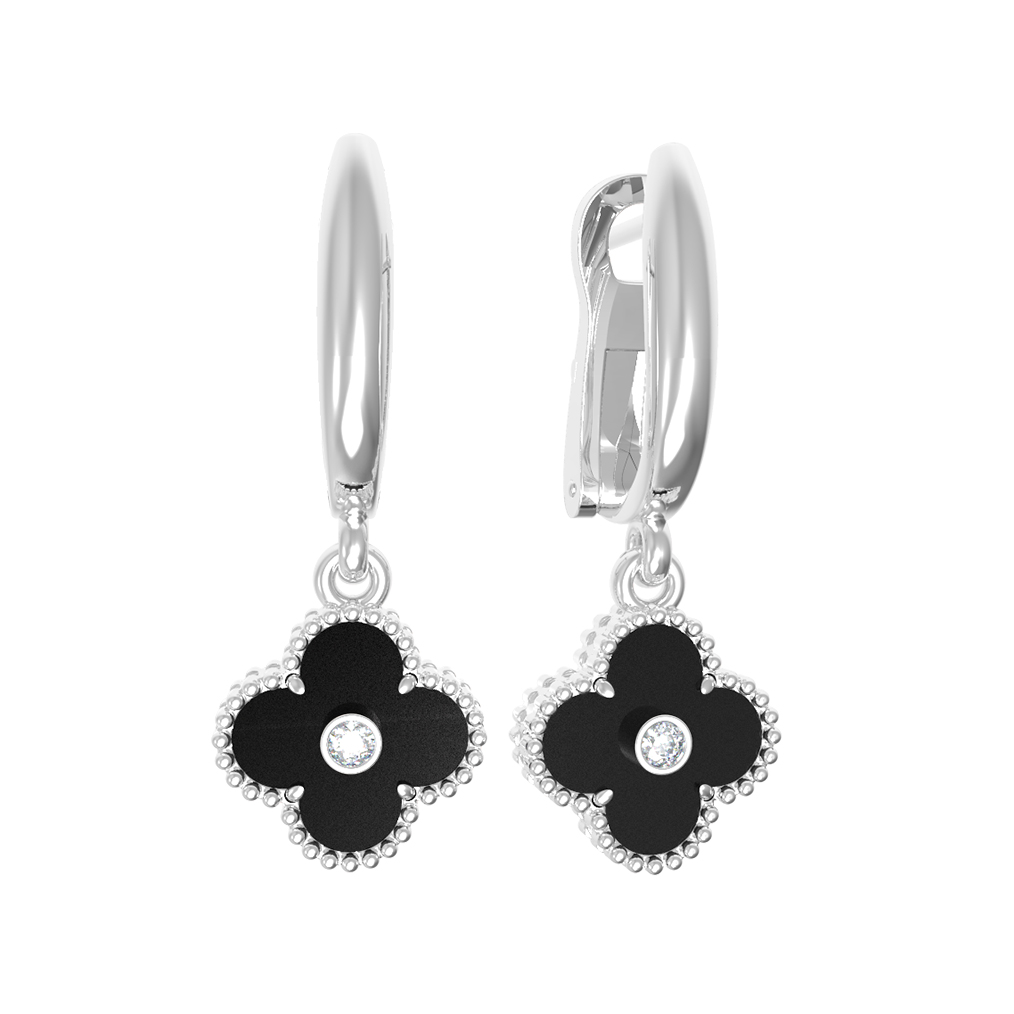 Серьги из белого золота c бриллиантами и ониксом