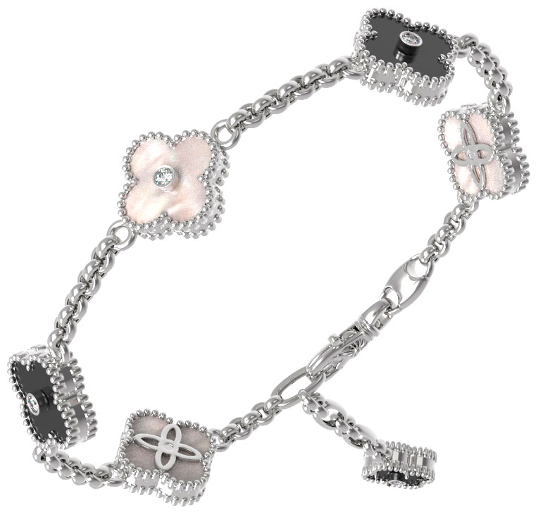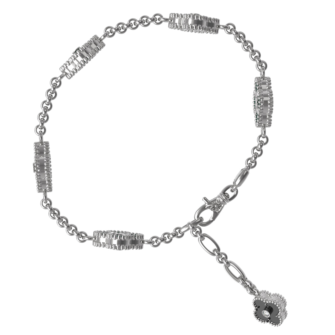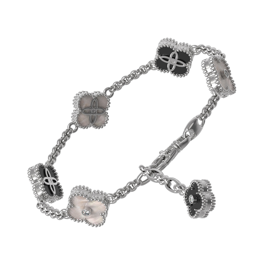 Браслет из белого золота c бриллиантами, ониксом и перламутром