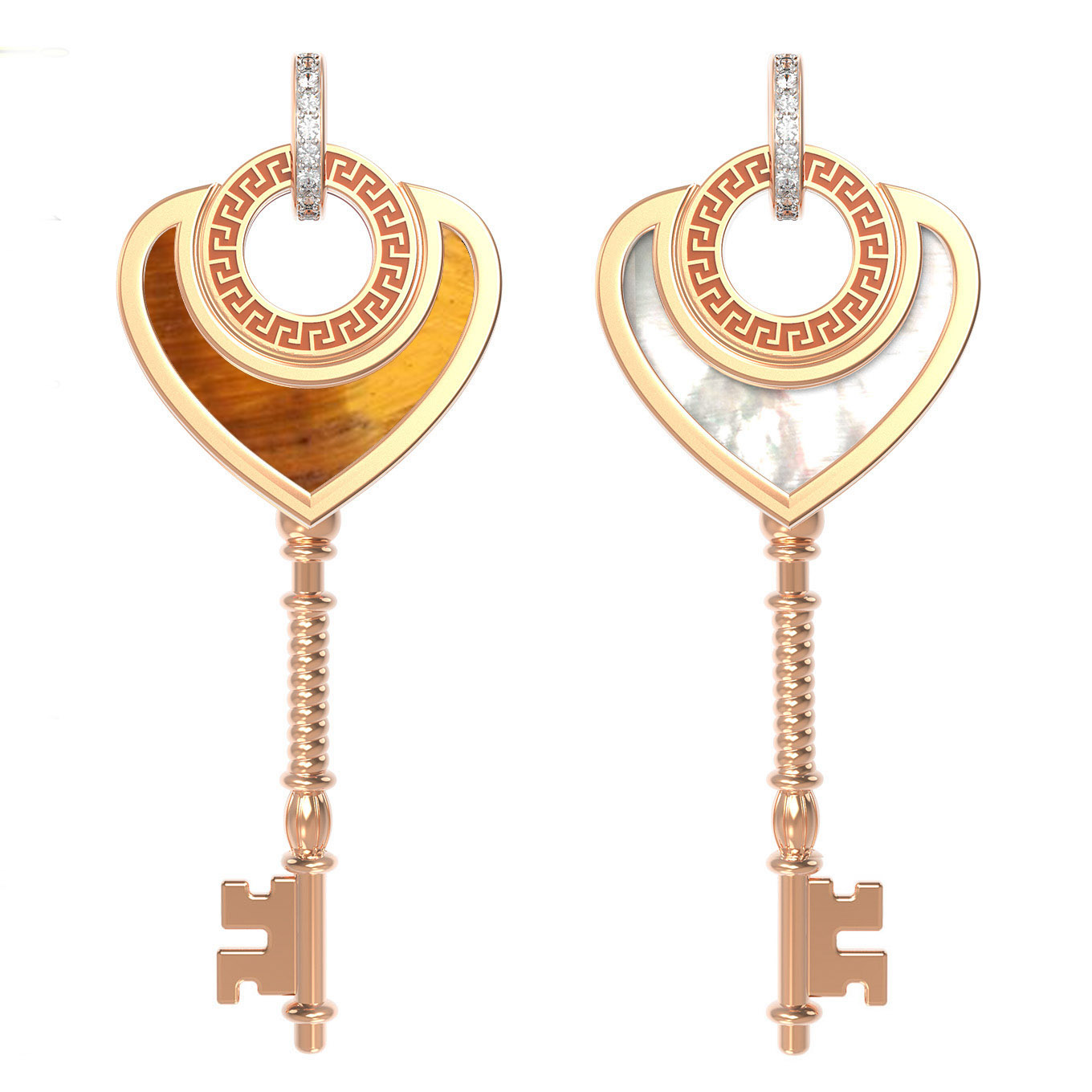 • Подвеска из золота c фианитом, тигровым глазом и перламутром