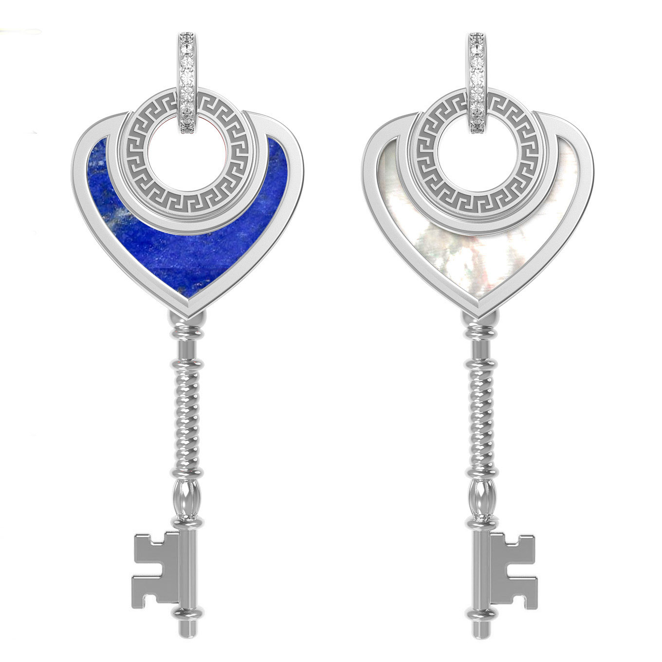 • Подвеска из белого золота c фианитом, лазуритом и перламутром