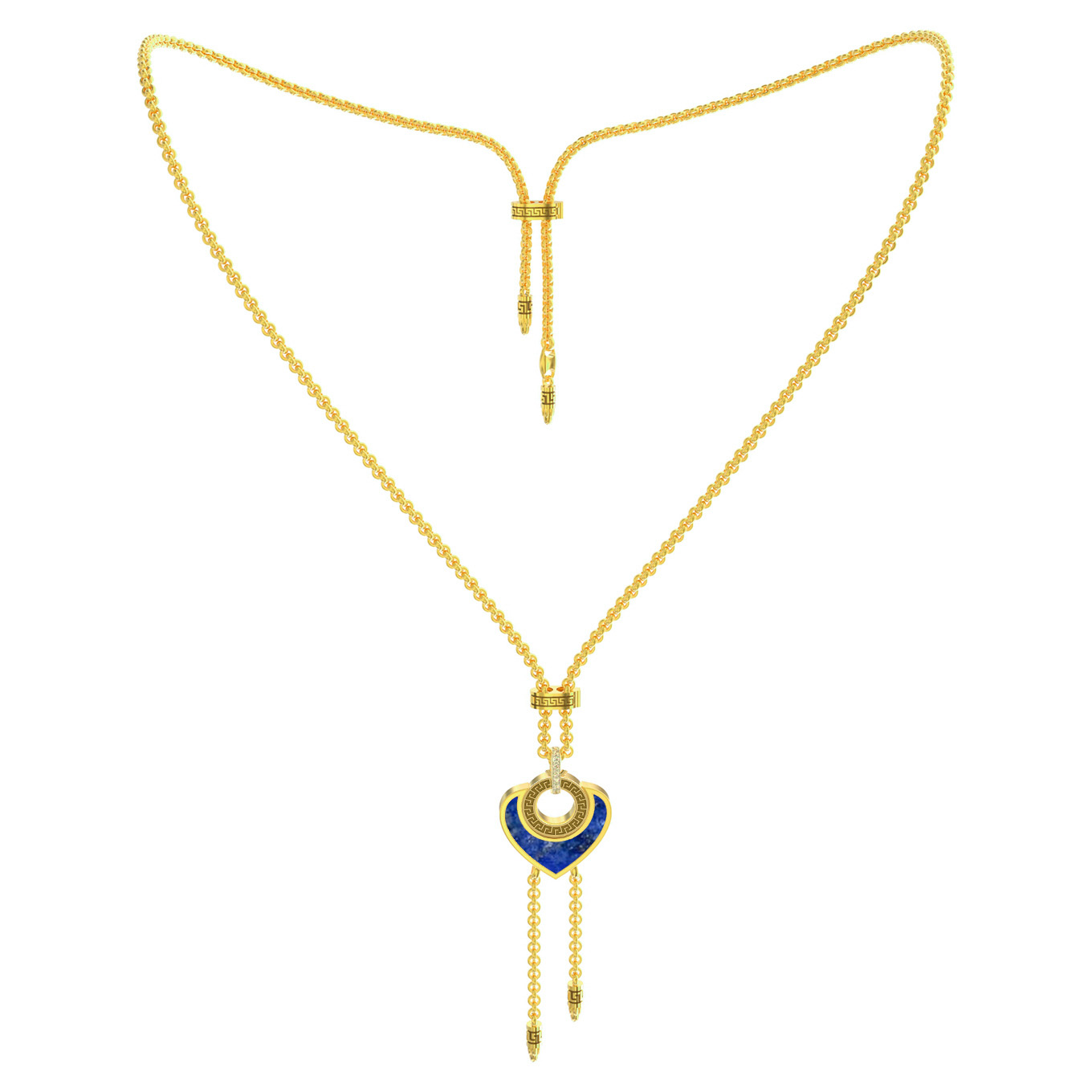 • Колье из лимонного золота c фианитом, лазуритом и перламутром