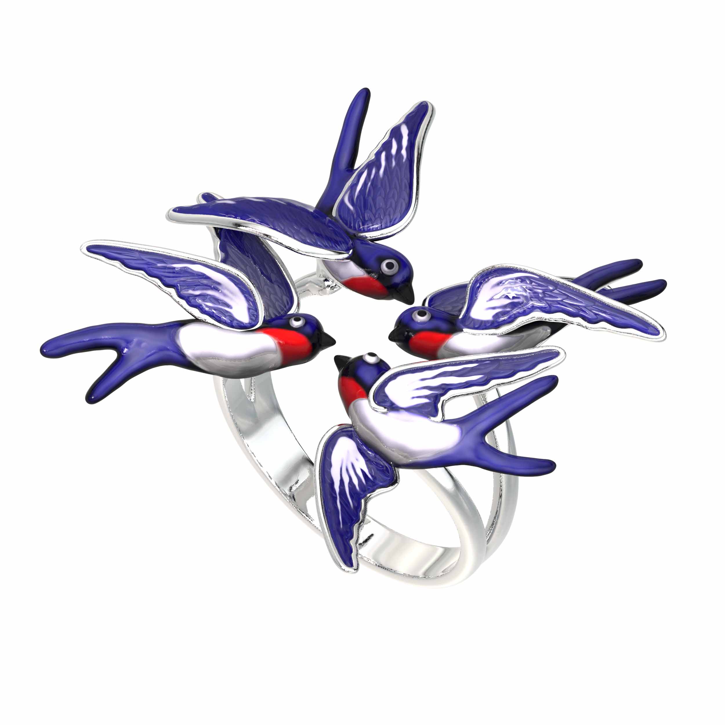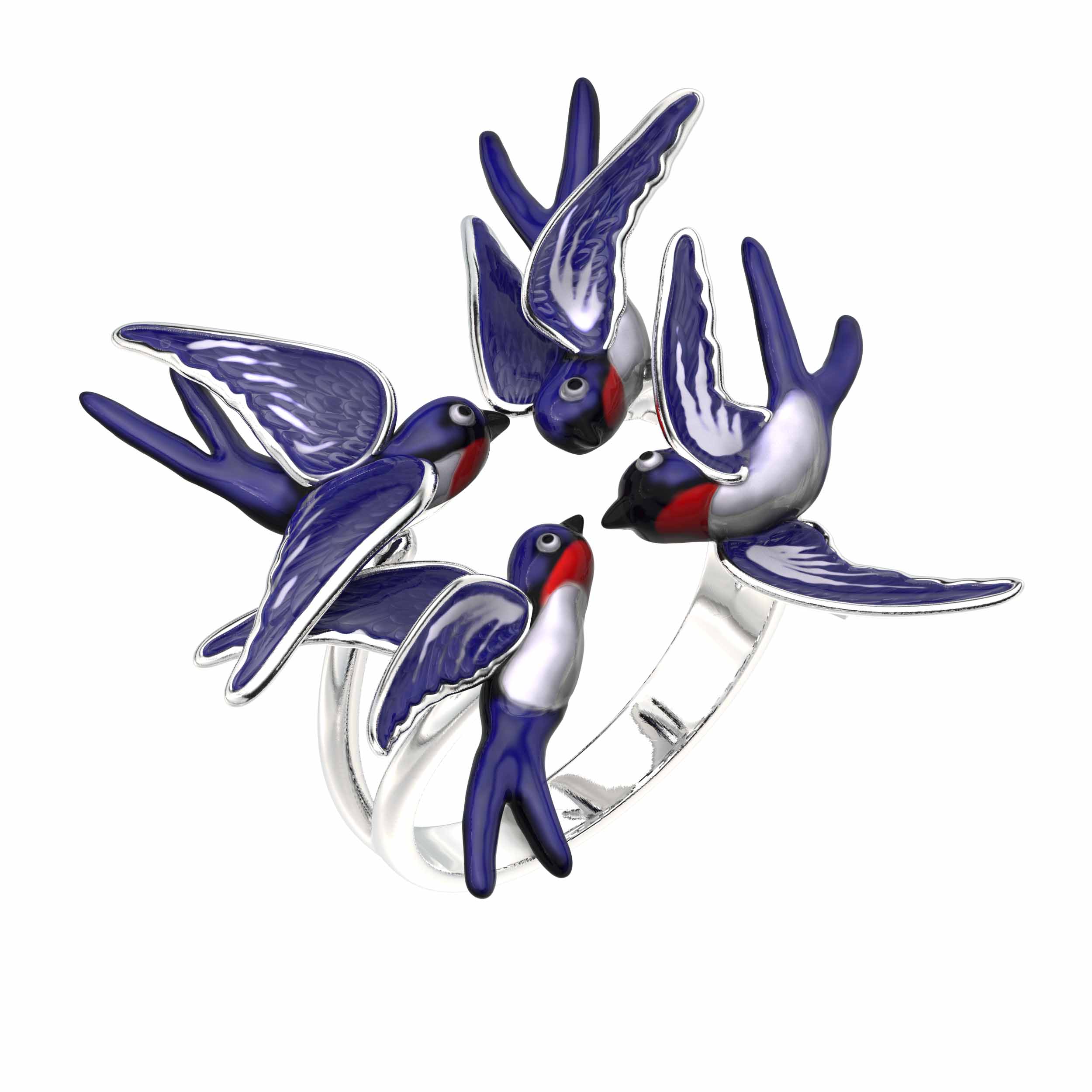 Кольцо из белого золота c эмаль