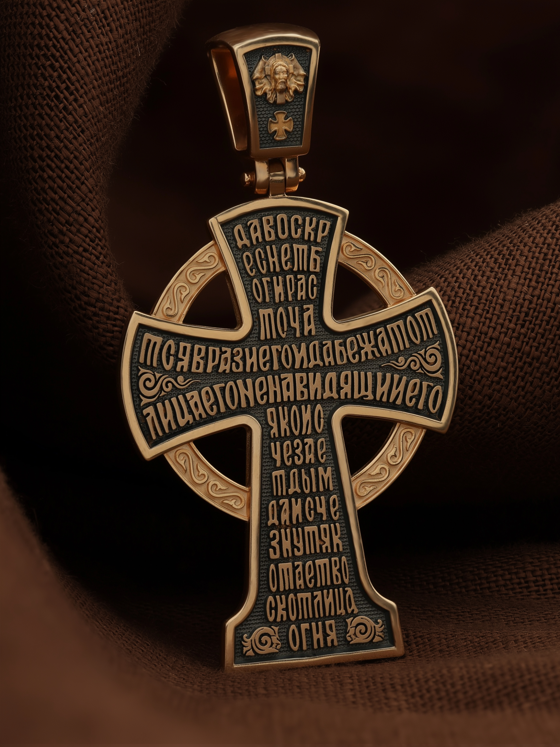 На обороте написан начальный стих оградительной молитвы Честному Кресту Господню: «Да воскреснет Бог, и расточатся врази Его, и да бежат от лица Его ненавидящии Его. Яко исчезает дым, да исчезнут; яко тает воск от лица огня, тако да погибнут беси от лица любящих Бога и знаменующихся крестным знамением, и в веселии глаголющих: радуйся, Пречестный и Животворящий Кресте Господень, прогоняй бесы силою на тебе пропятаго Господа нашего Иисуса Христа, во ад сшедшаго и поправшаго силу диаволю, и даровавшаго нам тебе Крест Свой Честный на прогнание всякаго супостата. О, Пречестный и Животворящий Кресте Господень! Помогай ми со Святою Госпожею Девою Богородицею и со всеми святыми во веки. Аминь».