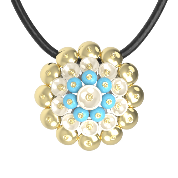Подвеска из лимонного золота c бирюзой и перламутром