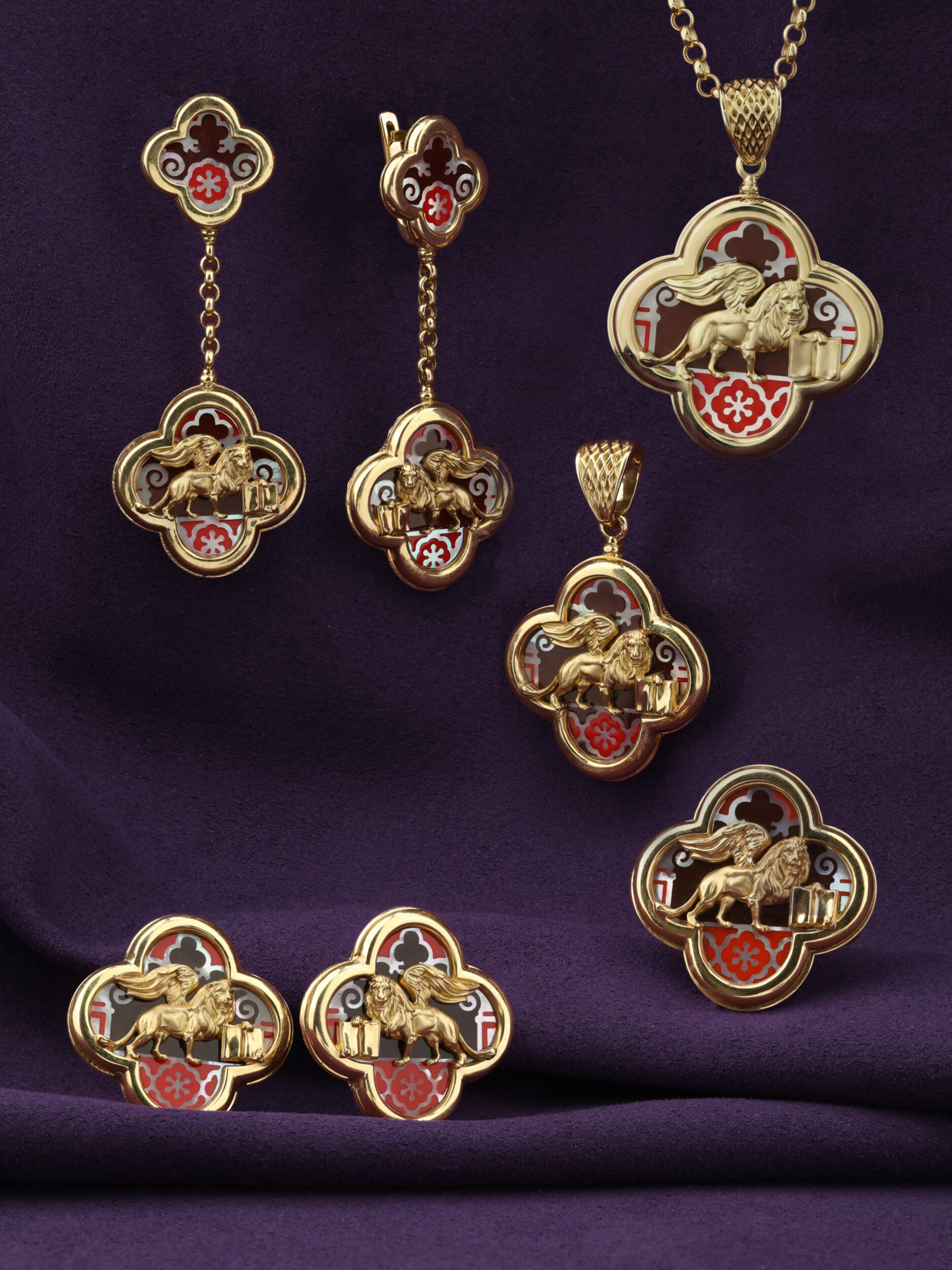 Подвеска из лимонного золота c эмаль и перламутром