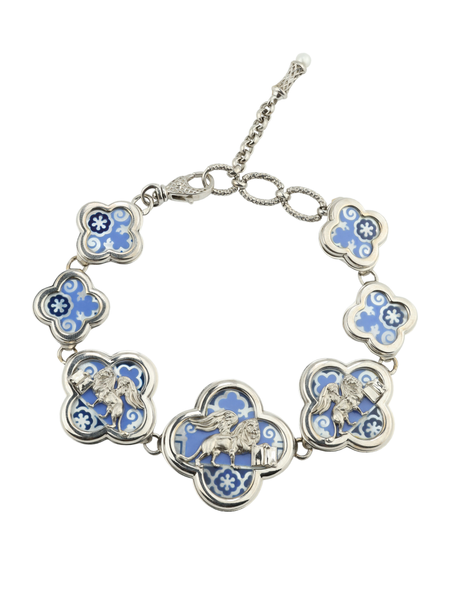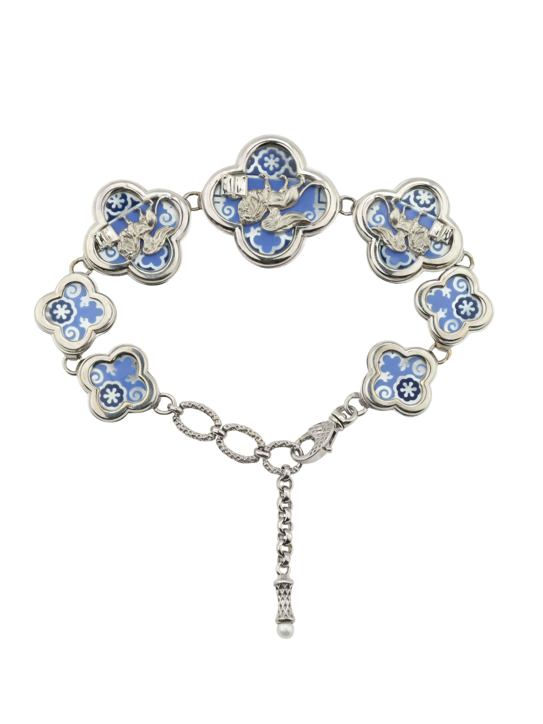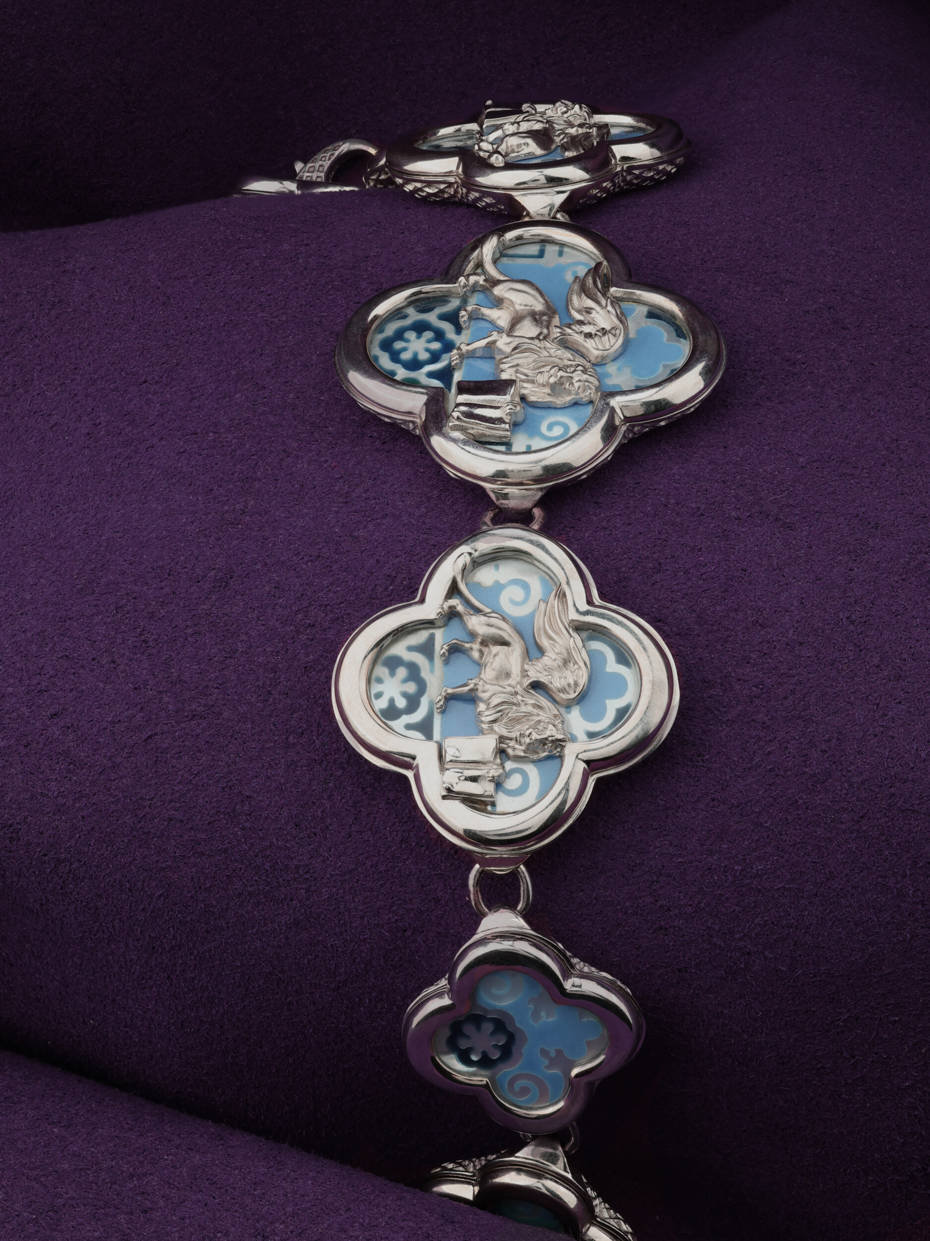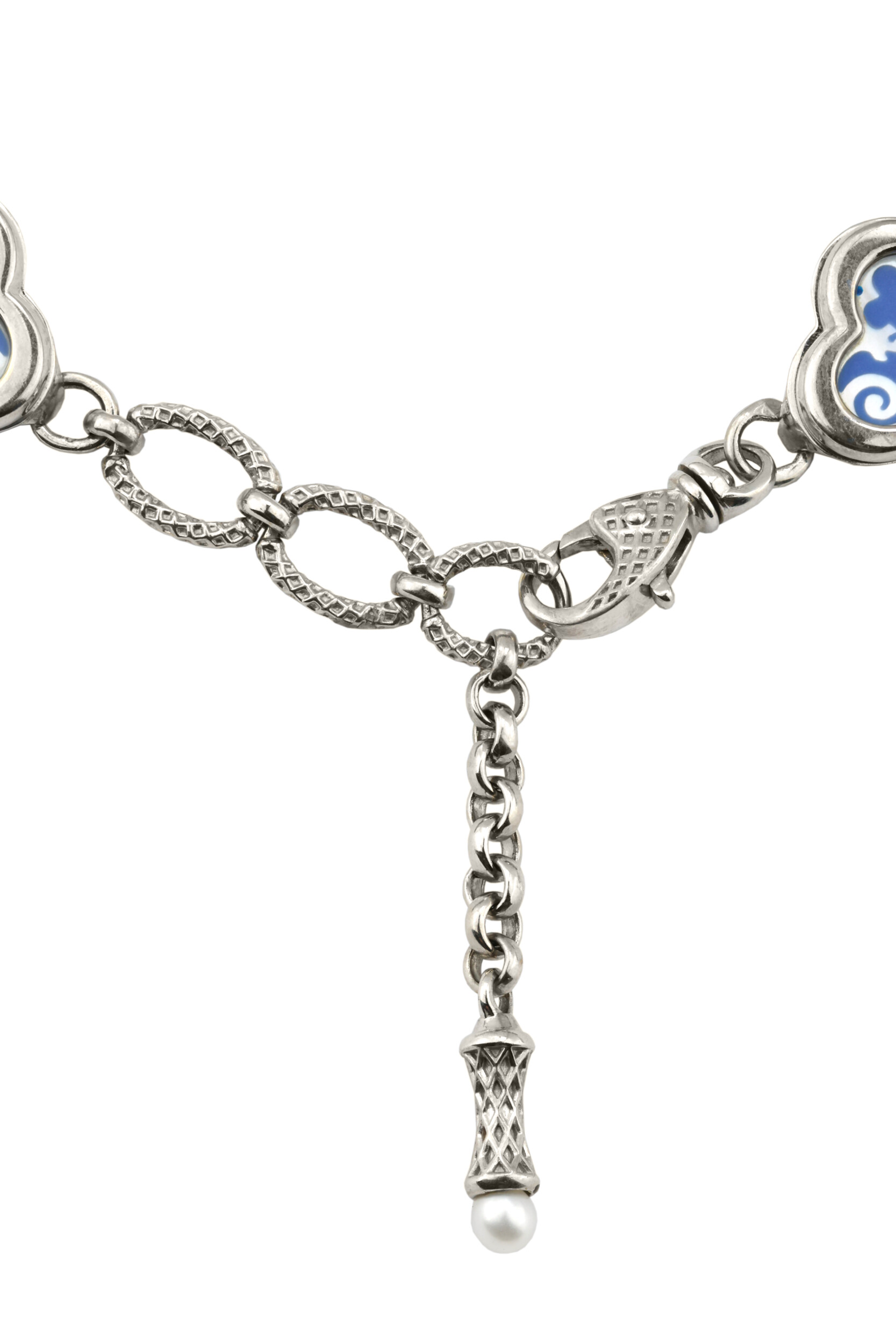 Браслет из белого золота c эмаль, жемчугом и перламутром