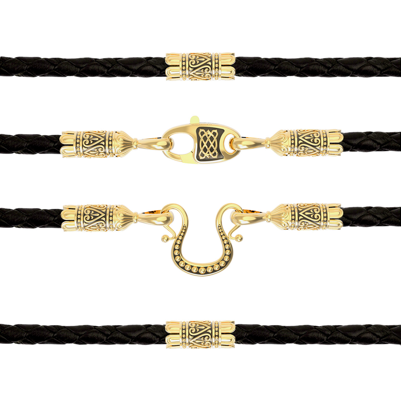 Шнурок кожаный из лимонного золота c кожаным шнурком