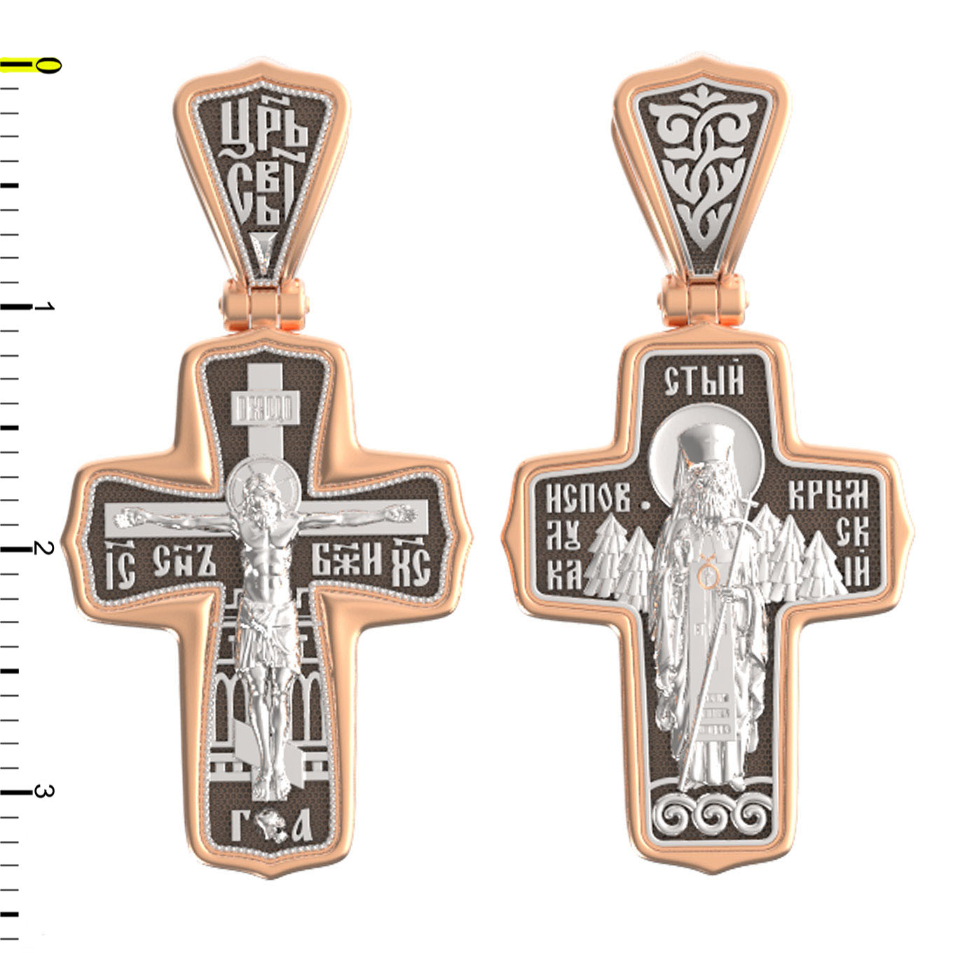 На оборотной стороне Креста помещен образ святителя Луки (Войно-Ясенецкого), архиепископа Симферопольского и Крымского, исповедника (1877–1961). Архиепископ Лука — русский святитель, исповедник, духовный писатель, доктор богословия, а также выдающийся ученый, автор трудов по анестезиологии, профессор хирургии, доктор медицинских наук, лауреат Сталинской премии. Он исповедовал веру Христову в гонениях, тюрьмах, лагерях и ссылке, пережил поношения и пытки, но остался верен Господу. Привел к православной вере тысячи и тысячи людей. Его почитание растет во всем православном мире. Неисчислимо количество свидетельств о чудесной помощи по молитвам к Святителю Луке. Архиепископ Лука советовал: «Главное в жизни — всегда делать людям добро. Если не можешь делать для людей добро большое, постарайся совершить хотя бы малое».
