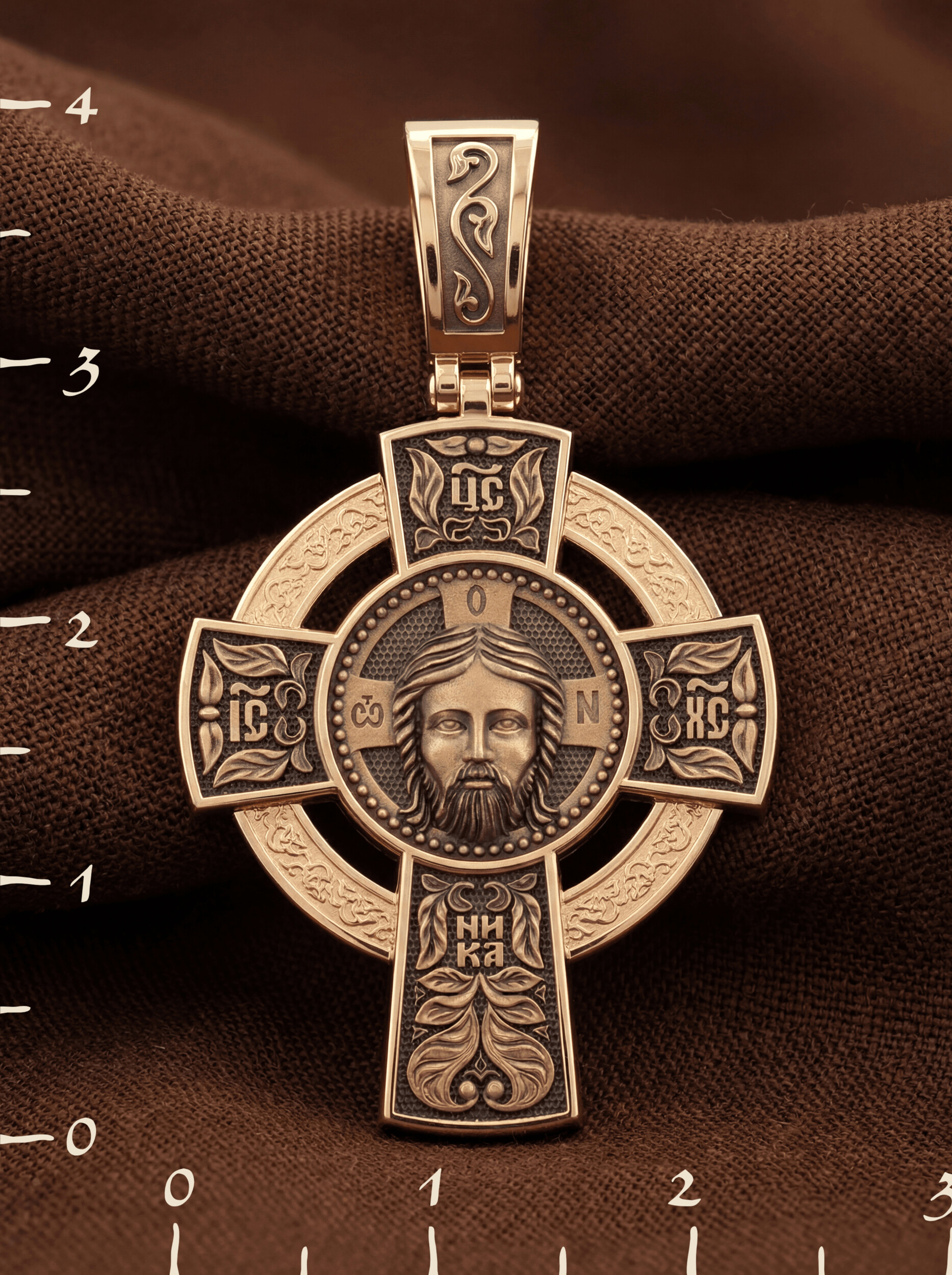 Нательный крест с кругом повторяет форму древних крестов, распространенных в России с конца XIII века. Простая лаконичная форма соединяет в себе два символа Бога: крест и круг. Крест знаменует Иисуса Христа, Бога, воплотившегося и распятого за грехи людей, круг — Бога сущего на Небесах, безначального и бесконечного. Часто такие кресты называют «кельтскими» или «новгородскими», так как кресты подобной формы были принесены на Русь кельтами, задолго до русских принявших христианство. Древнейший русский крест такой формы был найден в новгородской земле, в селе Боровичи.