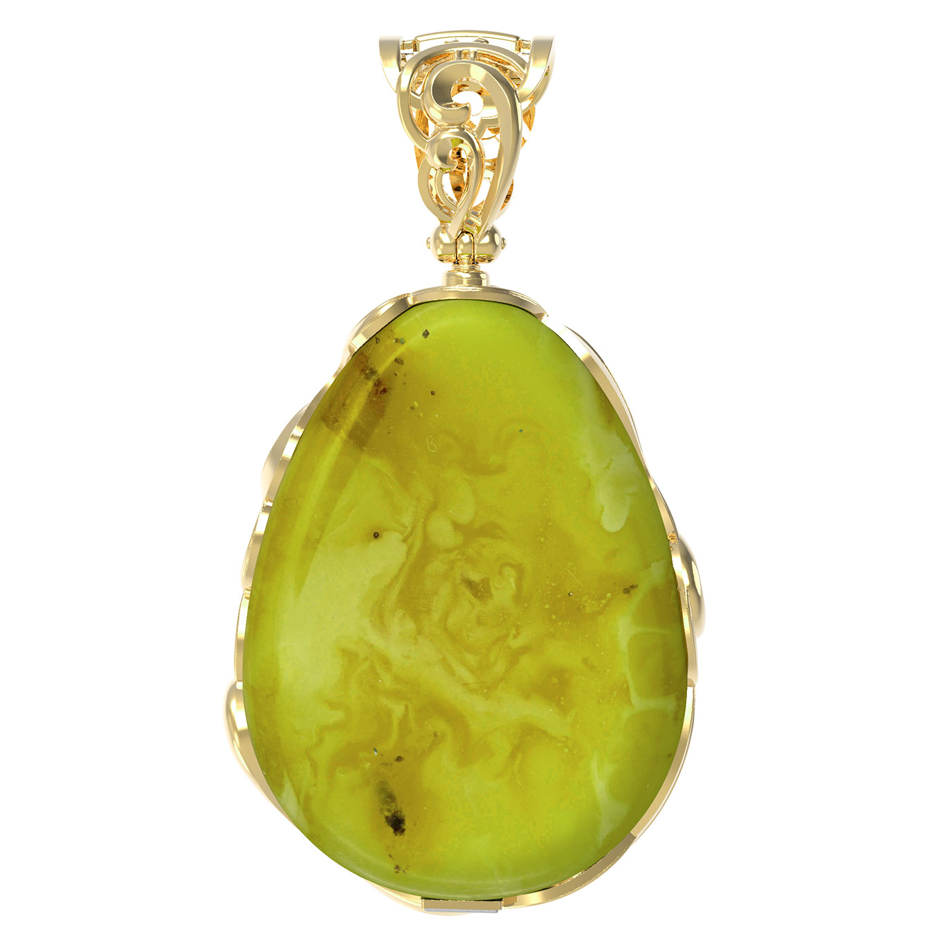 Подвеска из лимонного золота c росписным янтарём