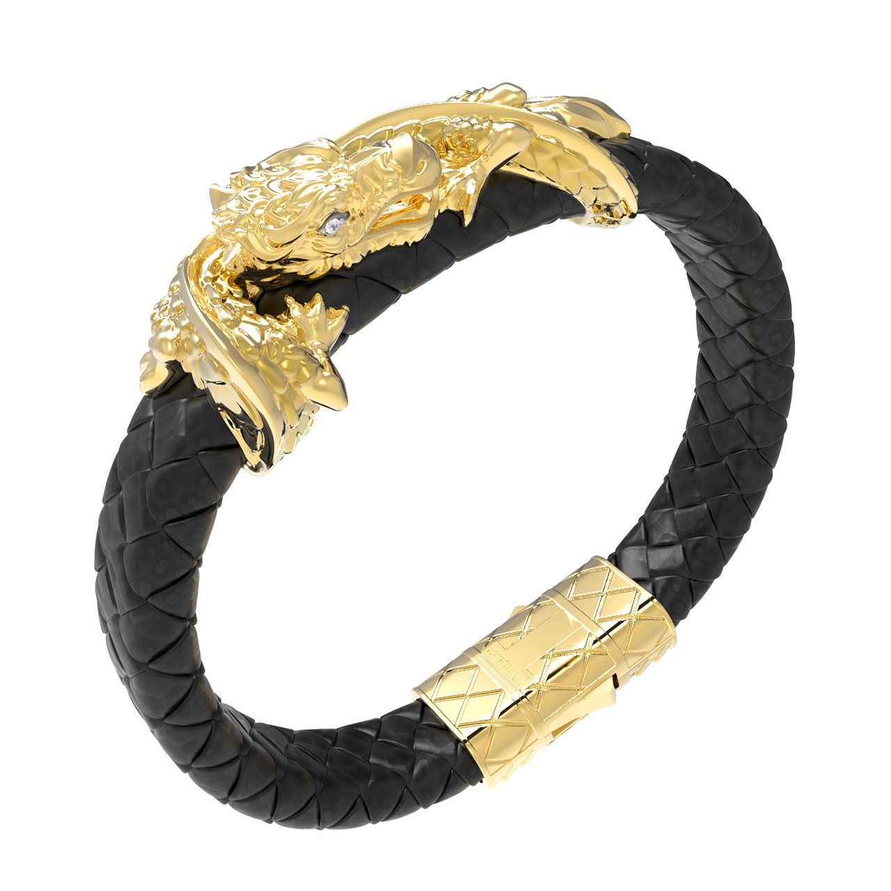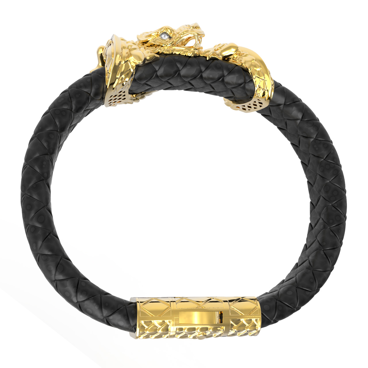 Браслет из лимонного золота c бриллиантами и кожаным шнурком
