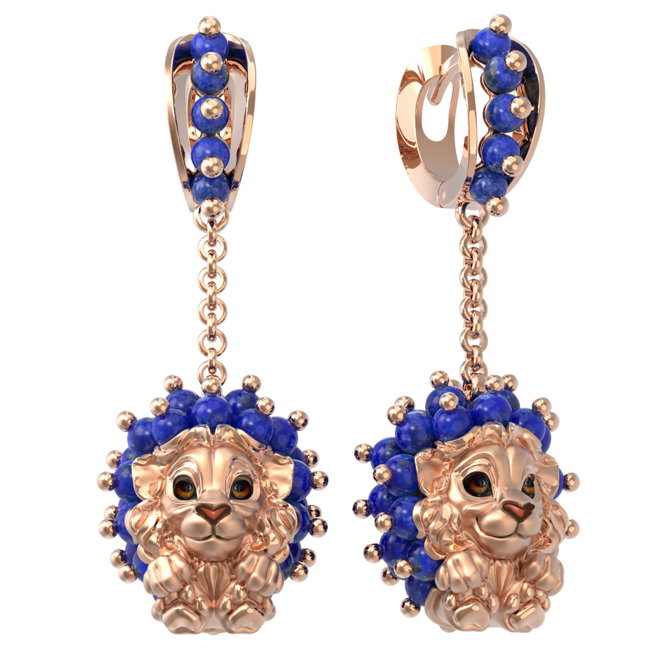 Серьги из золота c эмаль и лазуритом