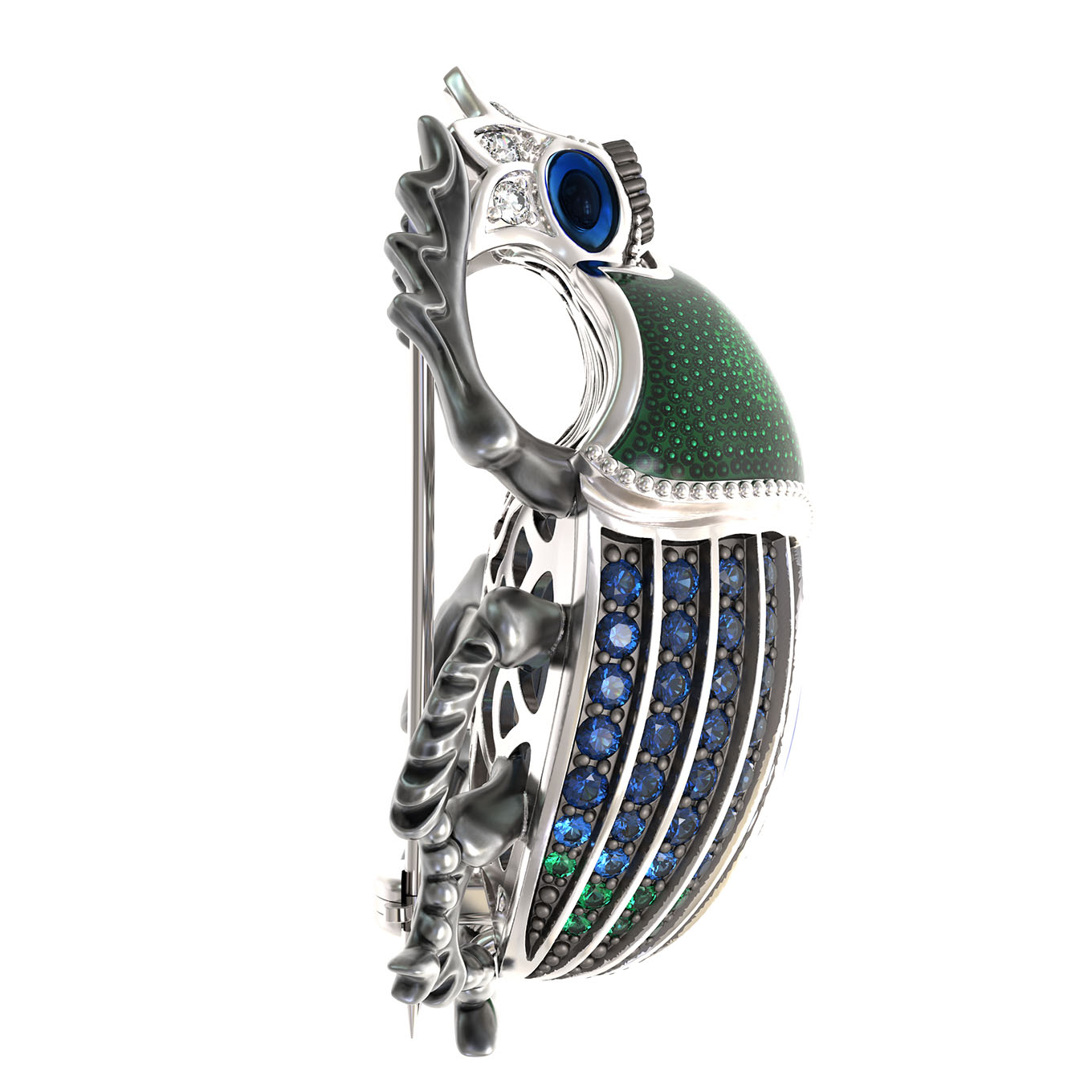 Брошь из белого золота c эмаль, фианитом и сапфиром