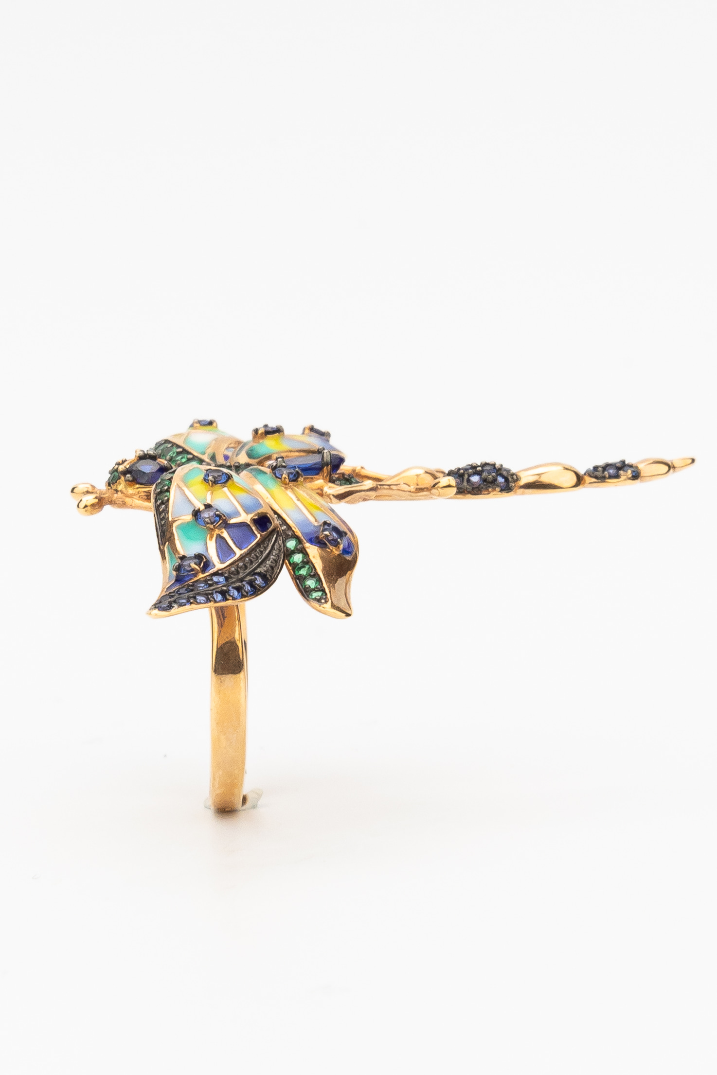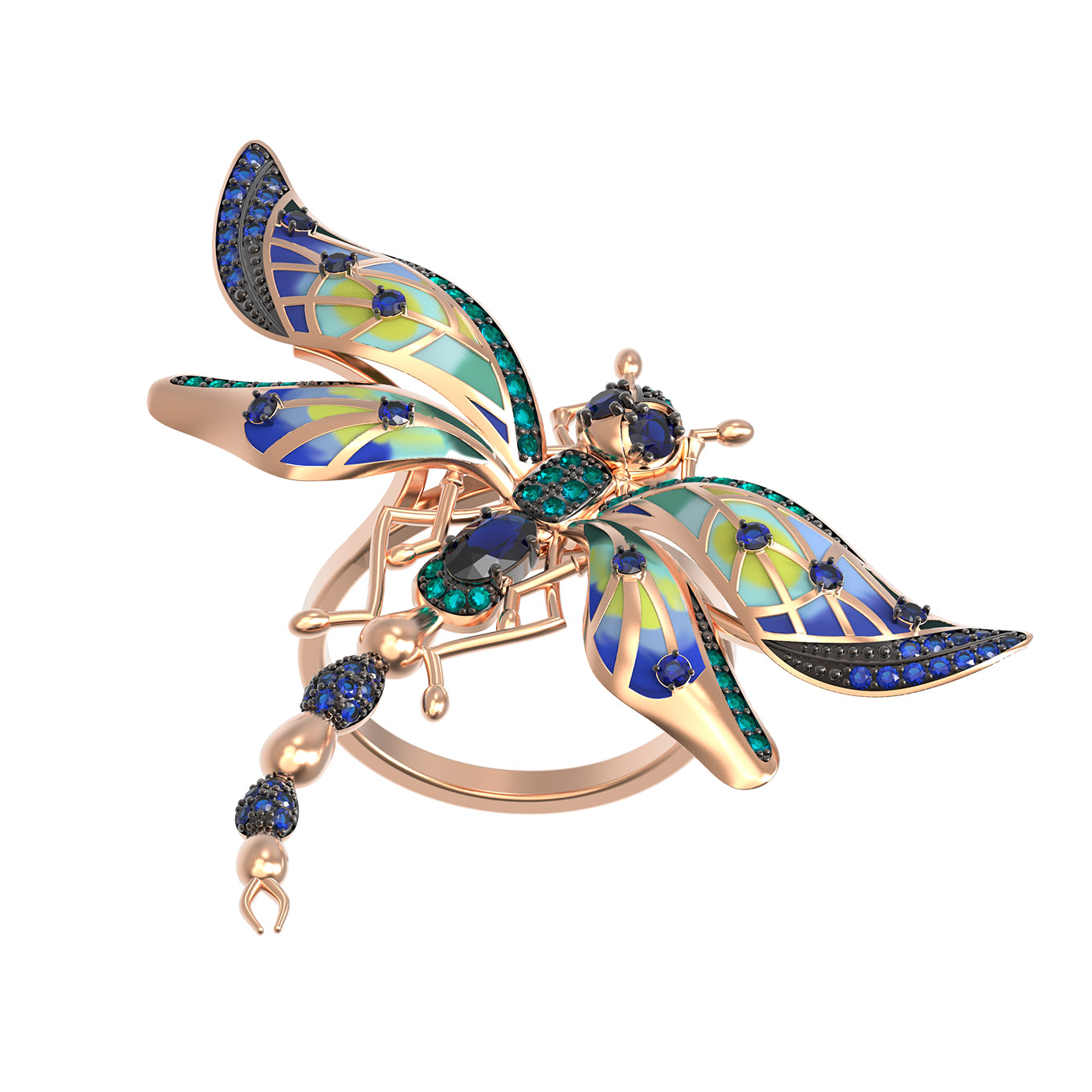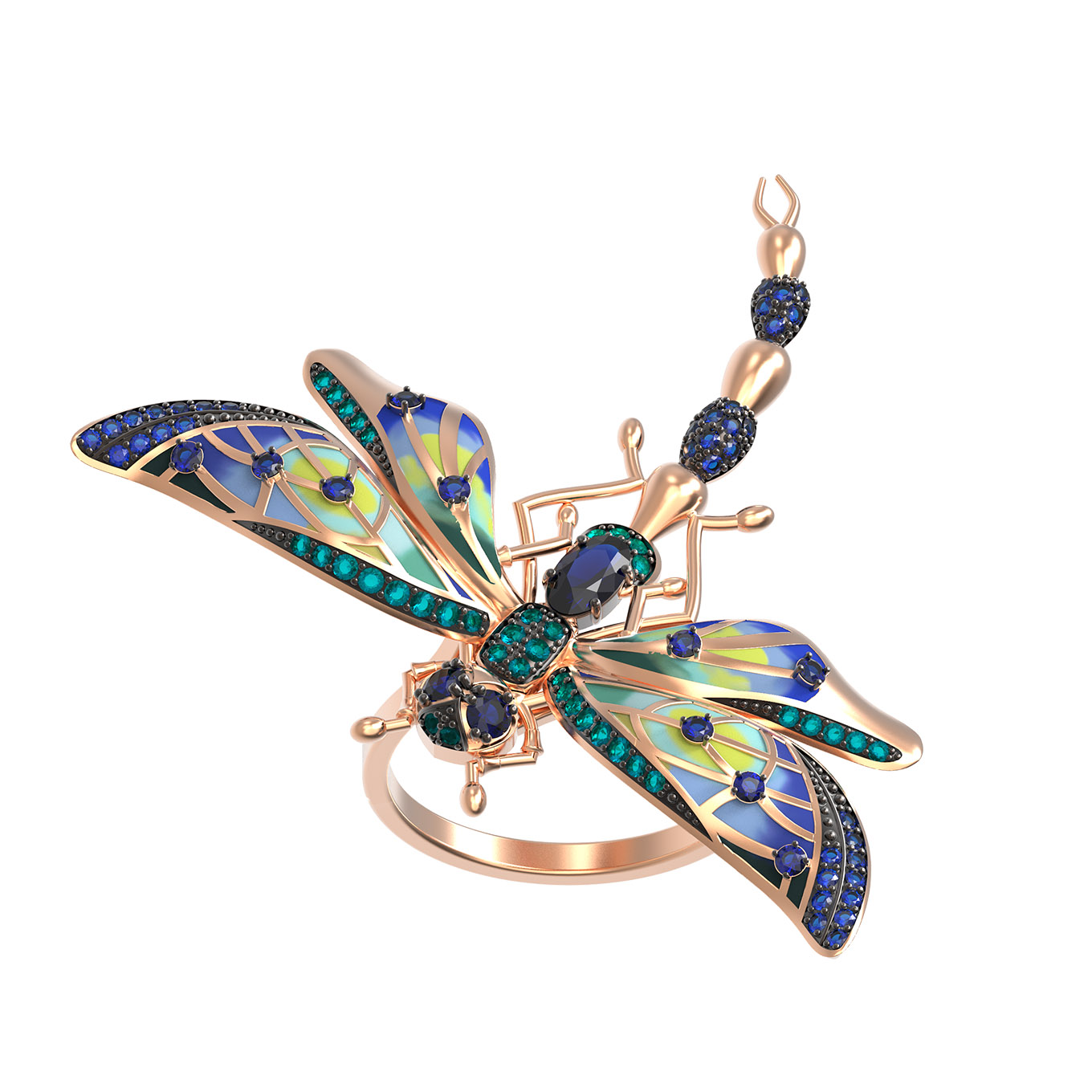 Кольцо из золота c фианитом, сапфиром и эмалью